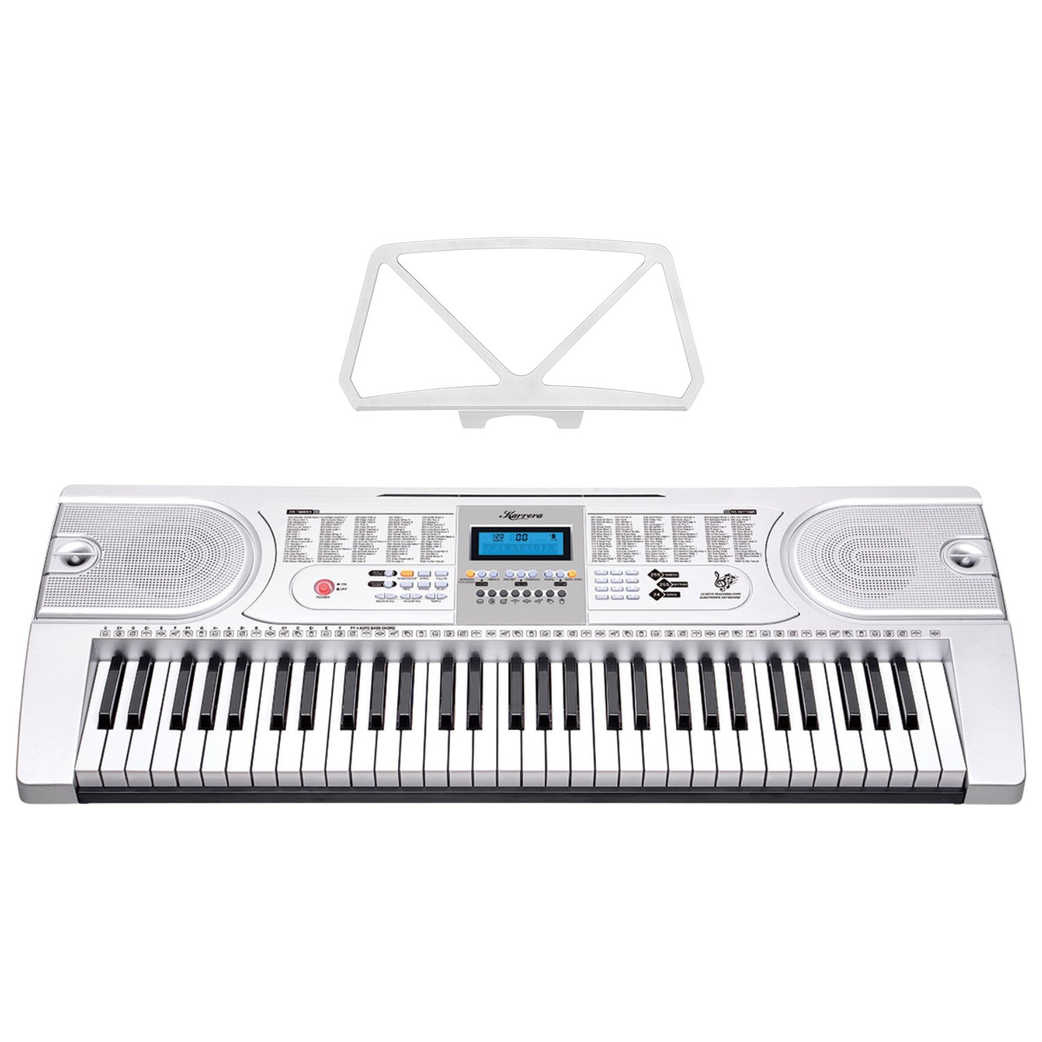 This multi-function keyboard runs on either batteries or wall cord for the ultimate portable convenience. It also comes with a keyboard stand and music sheet holder.