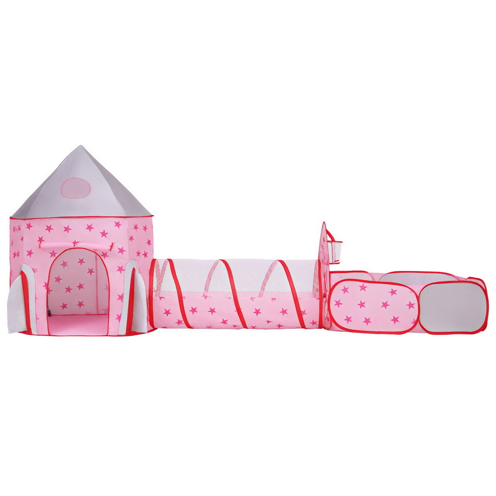 Keezi Kids Playhouse Play Tent Pop Up Castle Crawl Tunnel Basketball Hoop Pink