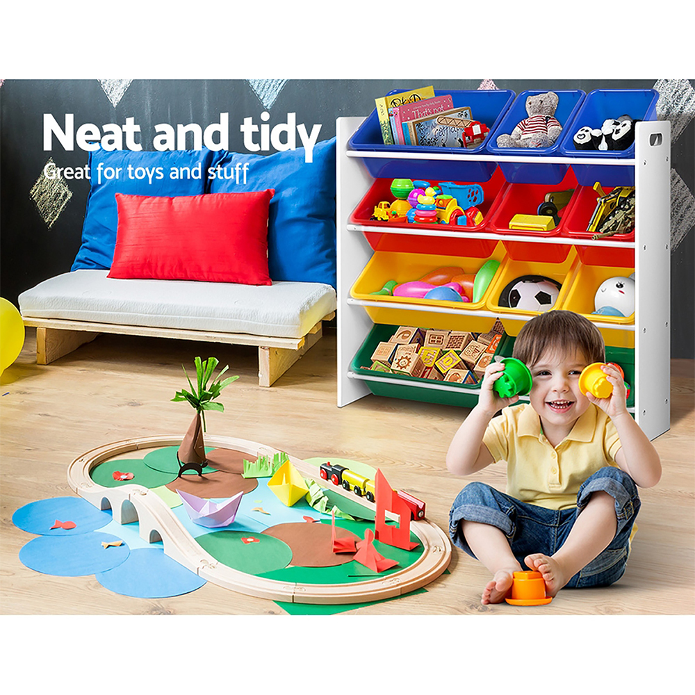 Keezi Kids Toy Box 12 Bins Bookshelf Organiser Children Storage Rack