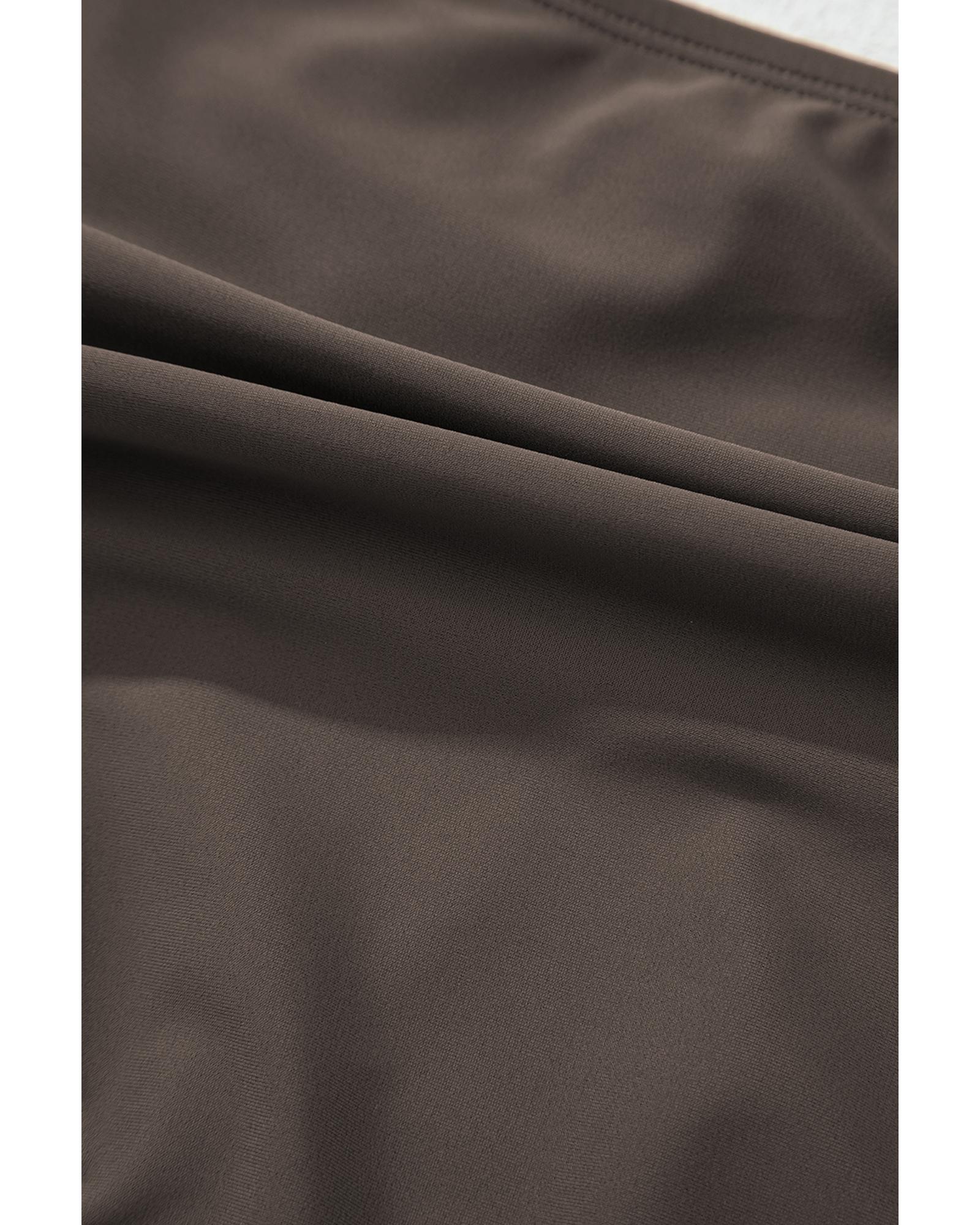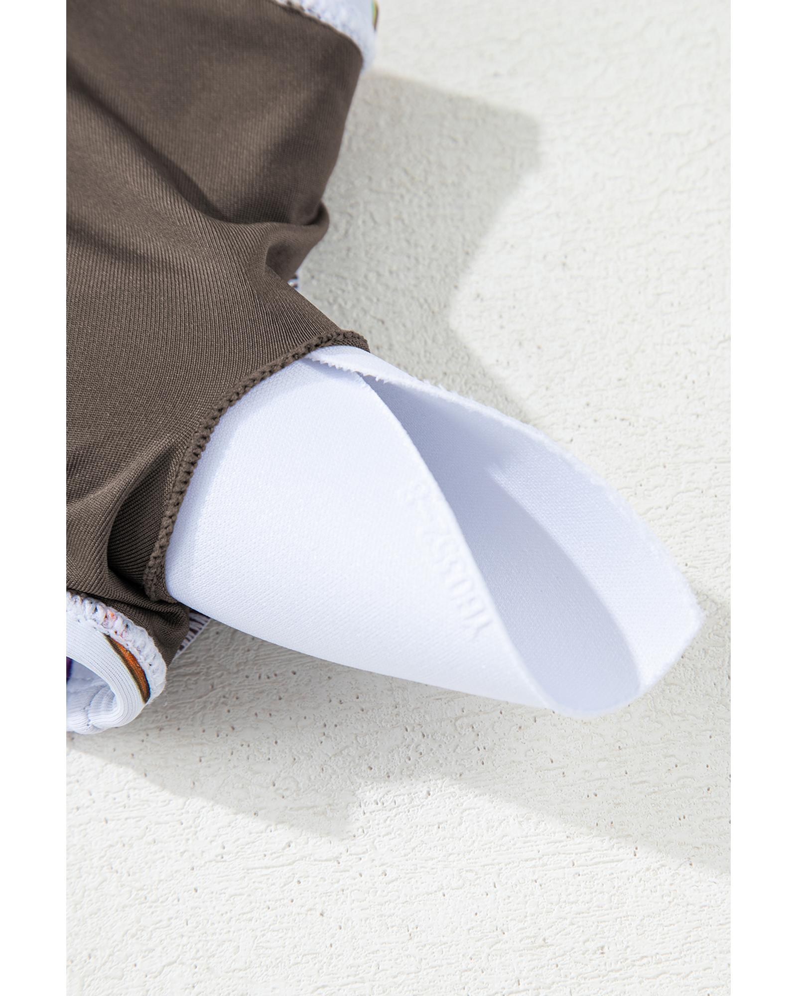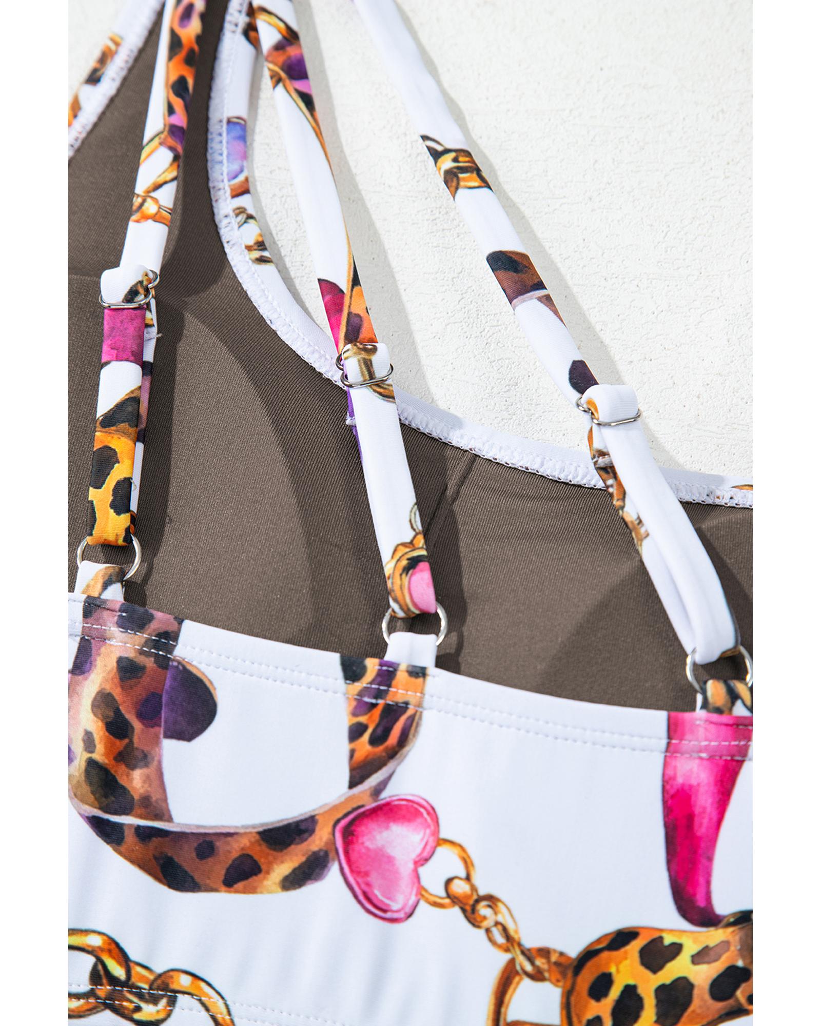 Khaki Abstract Print One Shoulder Ring Linked High Waist Bikini – S