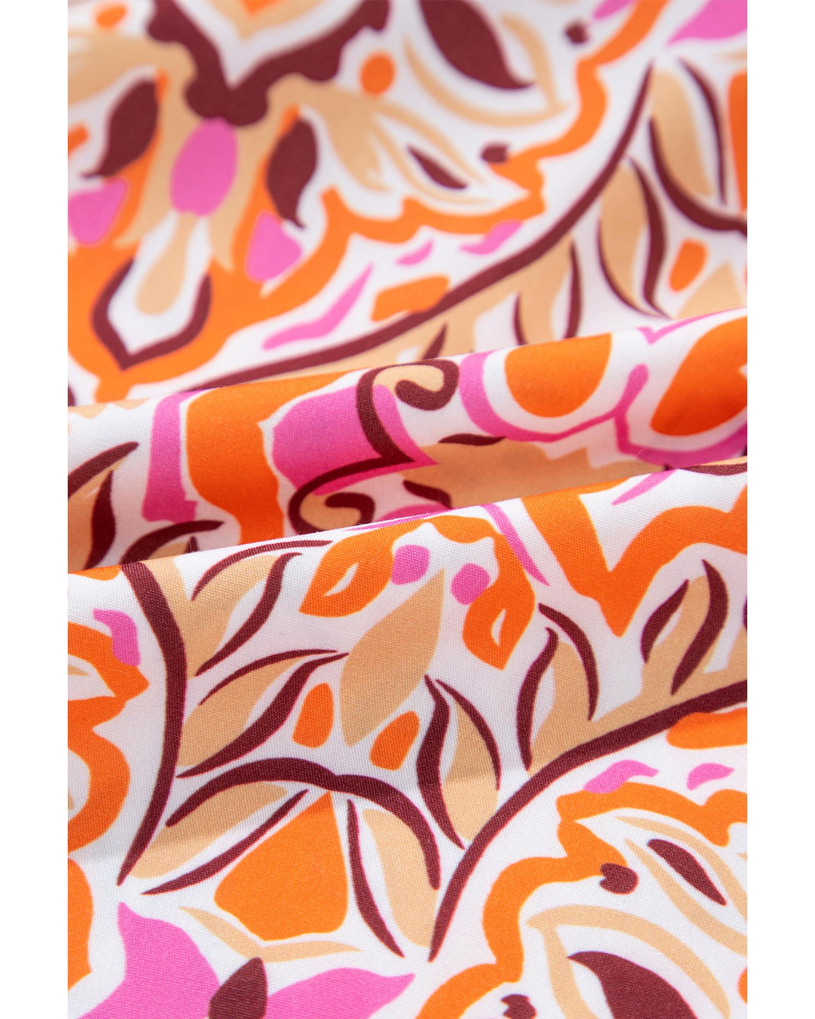 Pink Abstract Printed Flutter Sleeve Daring Cutout Long Dress - XL