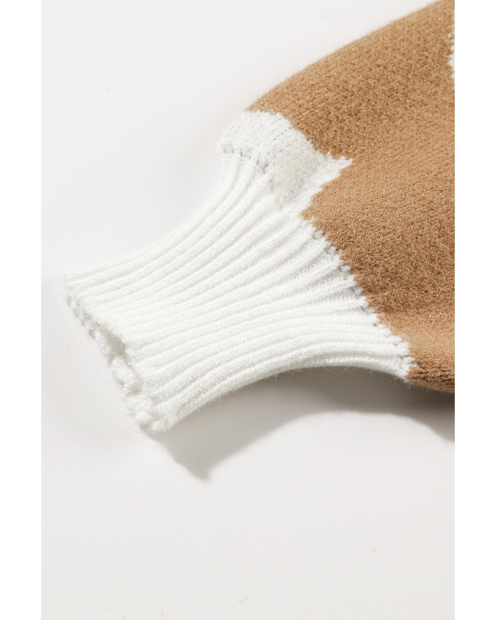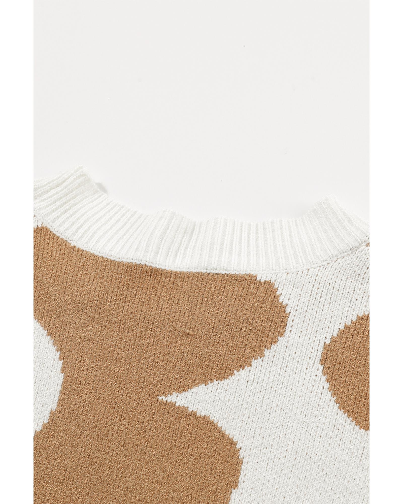 - Khaki Big Flower Pattern Drop Shoulder Sweater
