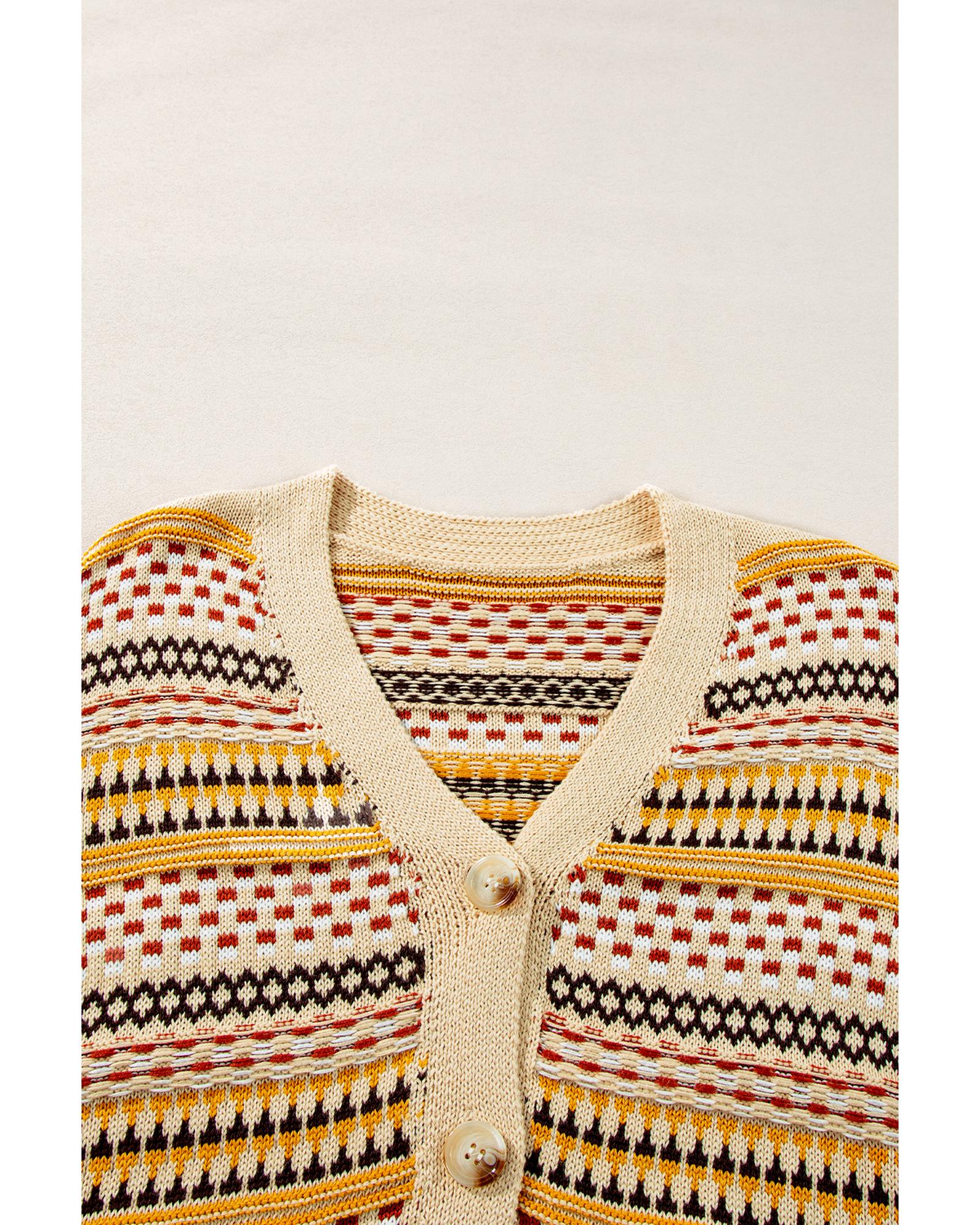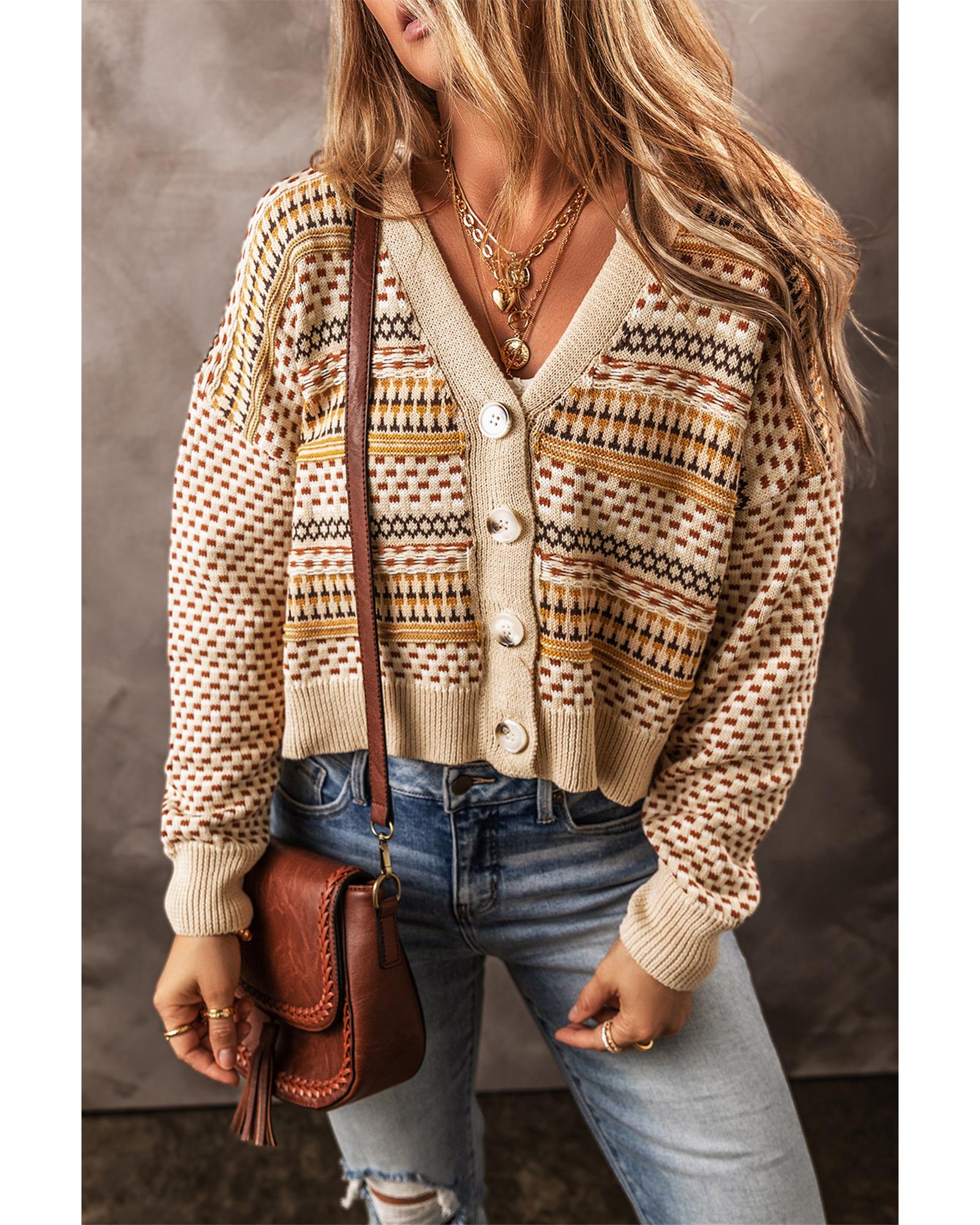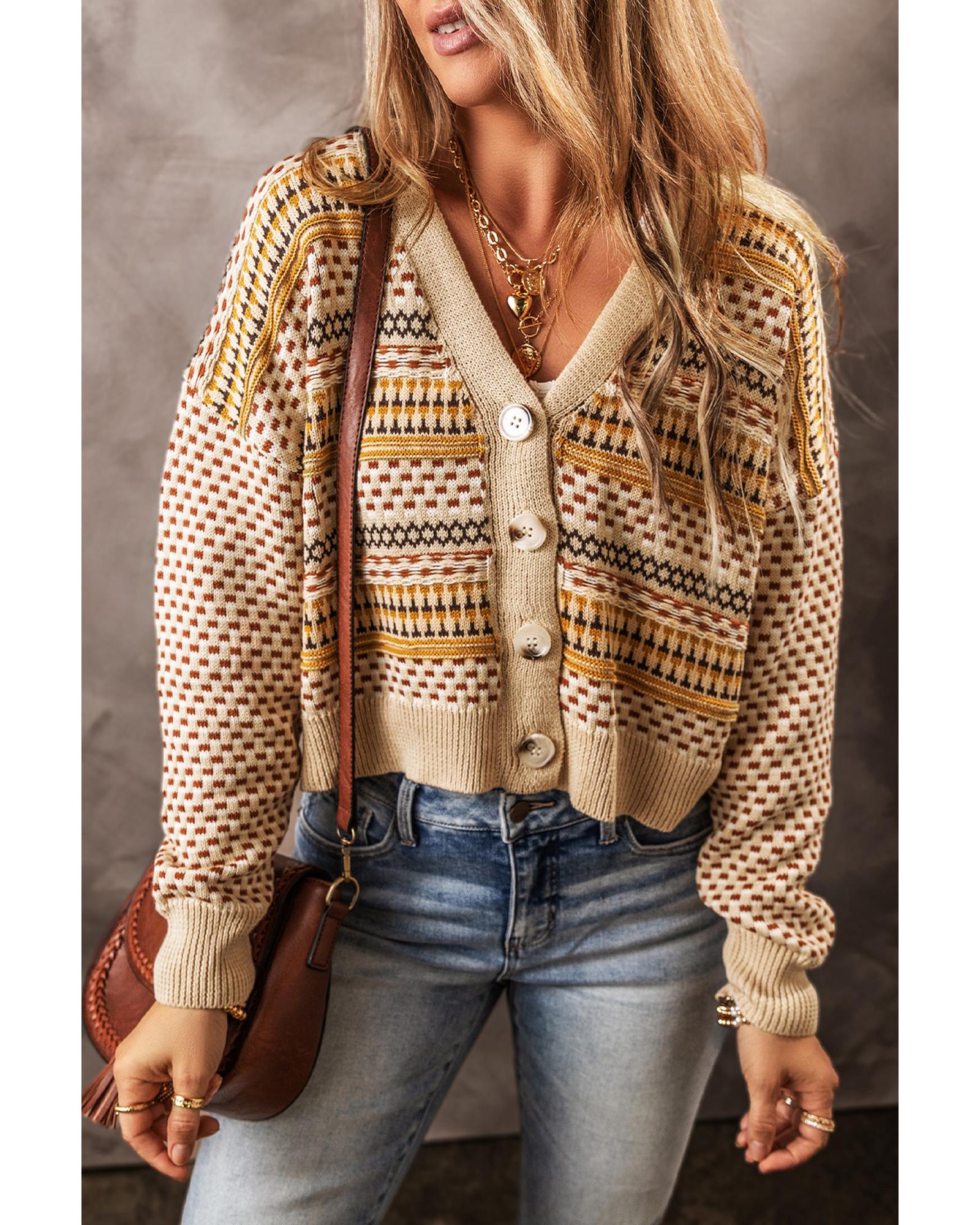 Khaki Buttoned V Neck Cropped Cardigan – S