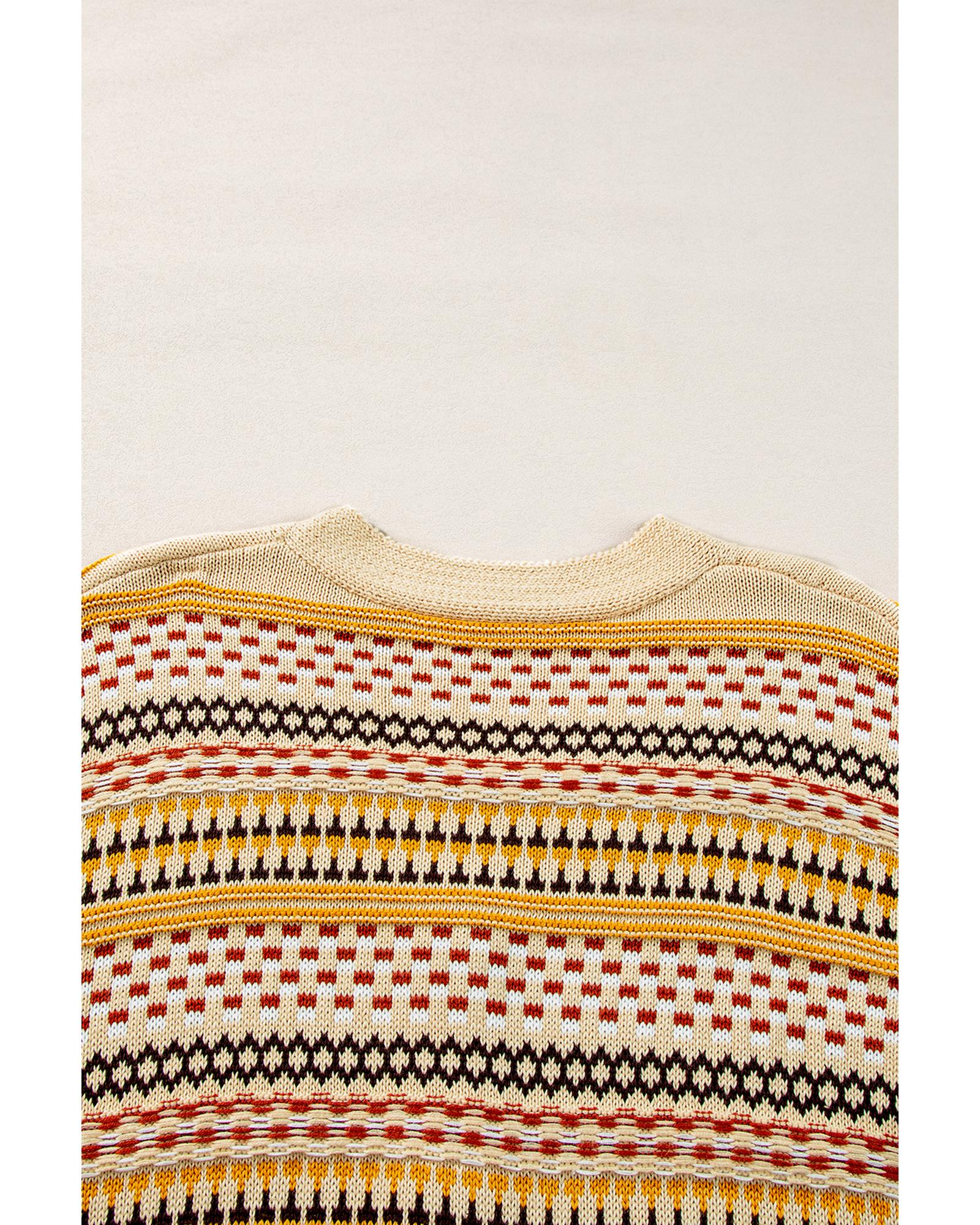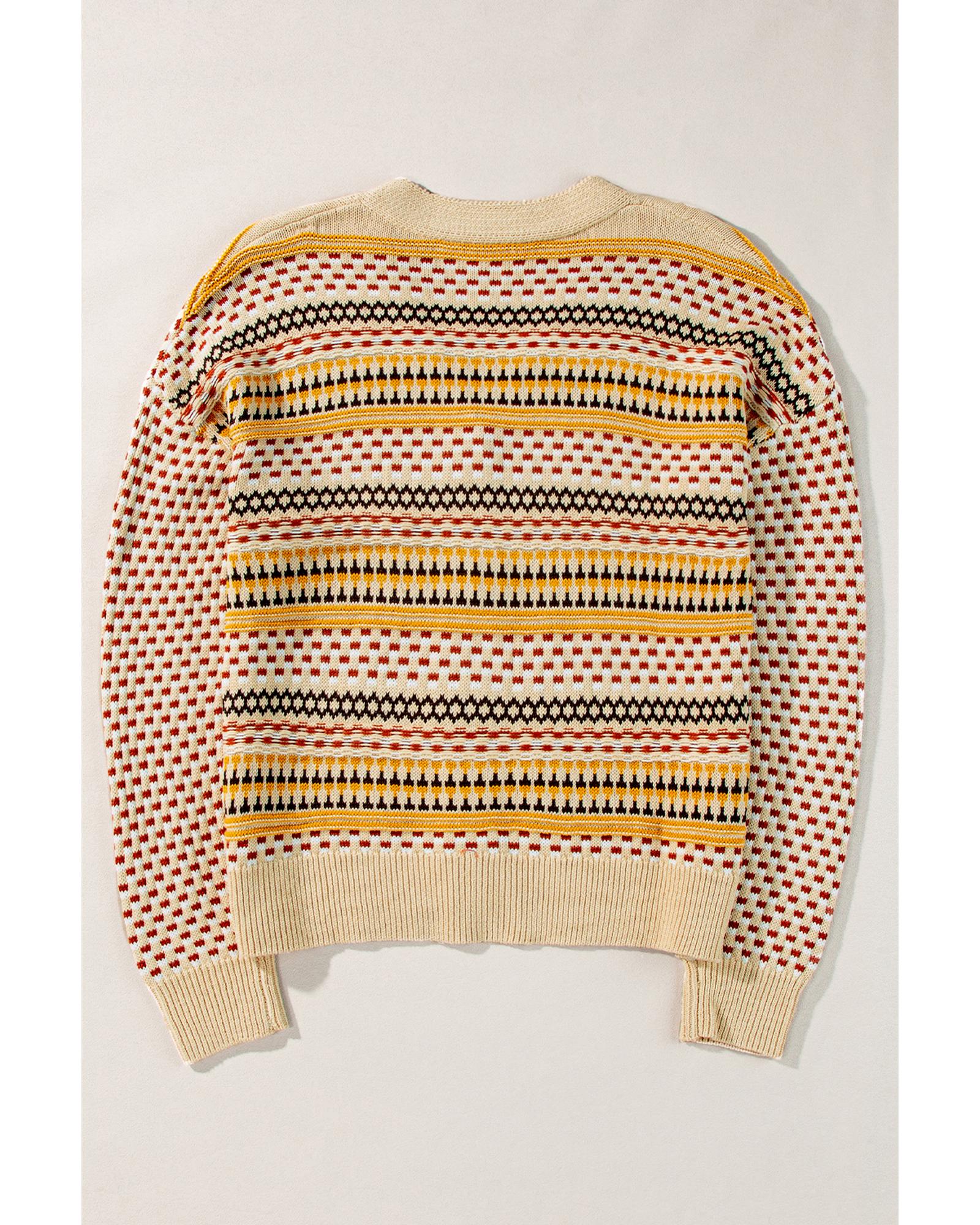 Apricot Crochet Lace Sleeve Ribbed Knit Cardigan - XL
