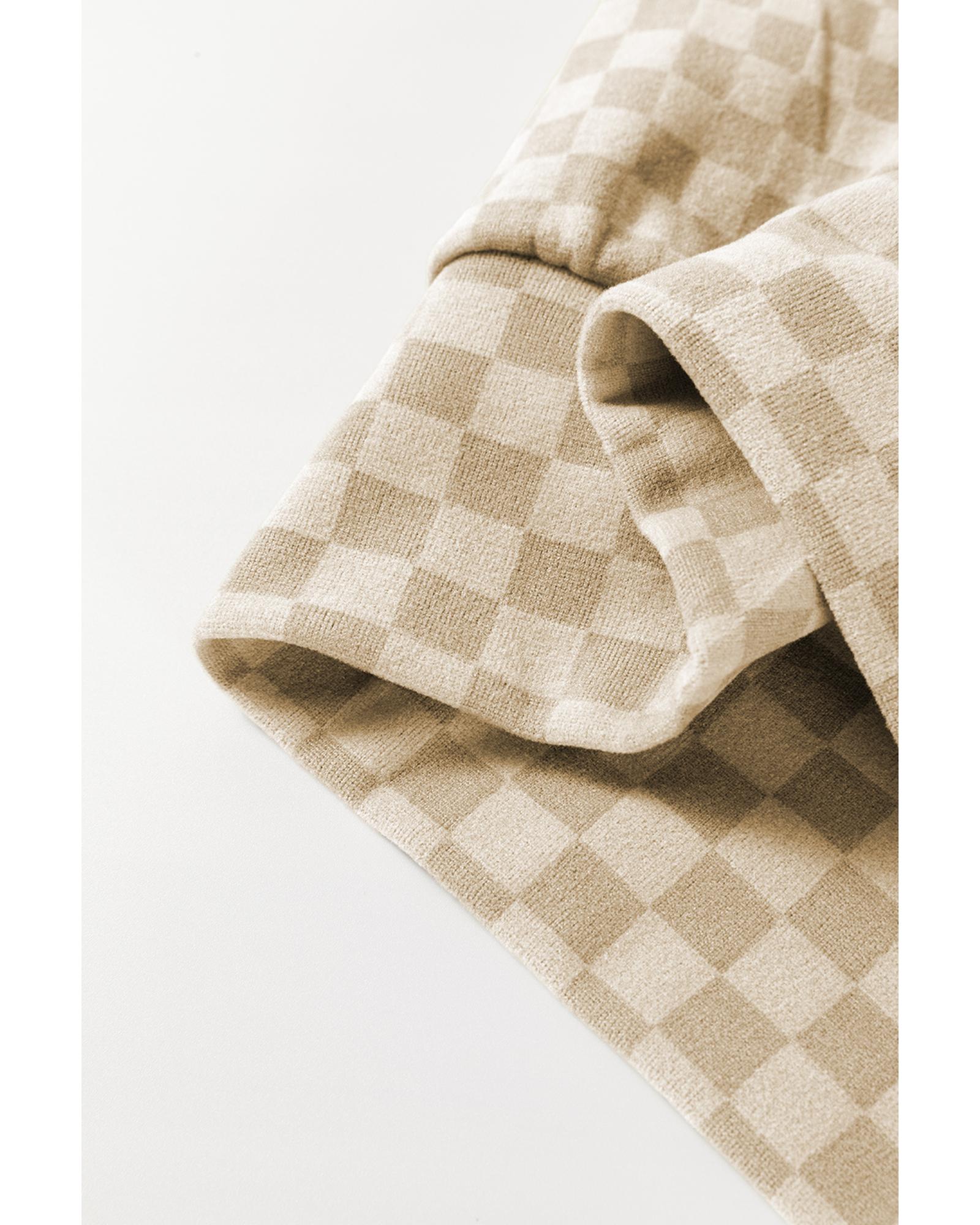 Khaki Checkered Print Kangaroo Pocket Drawstring Hoodie – XL
