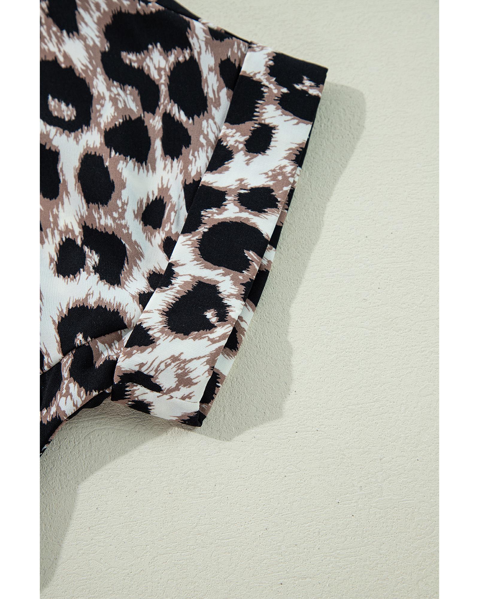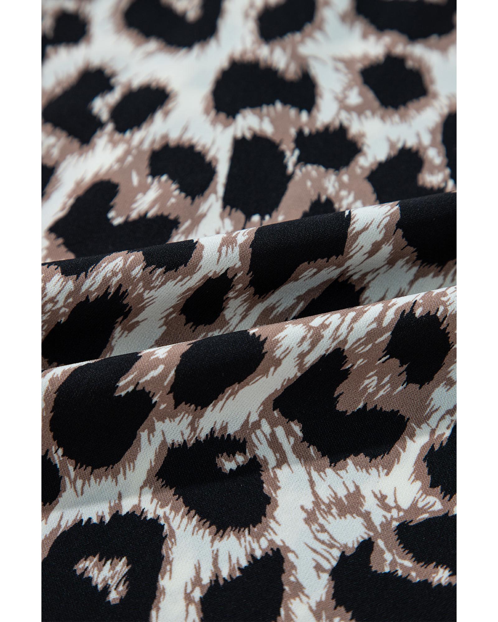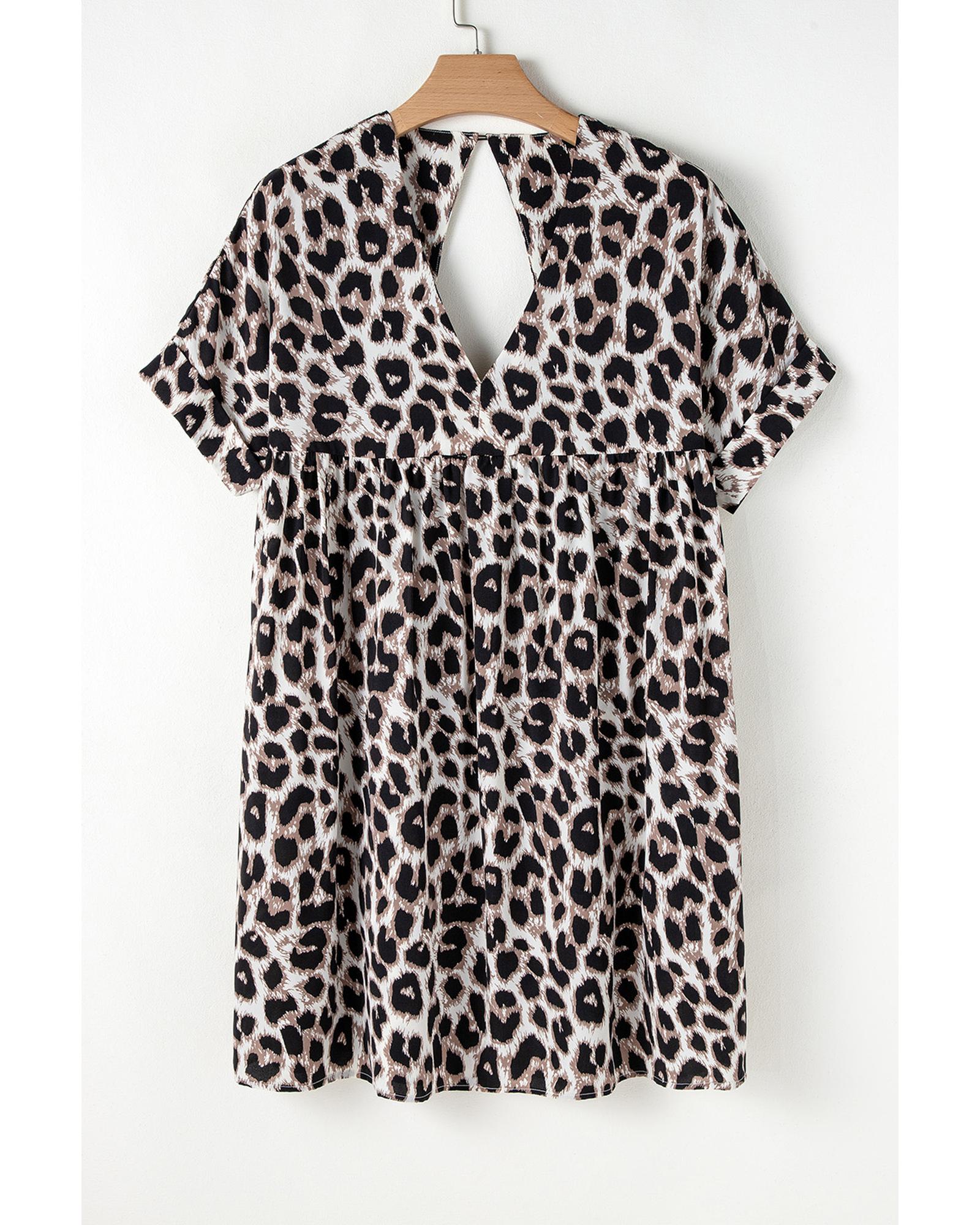 Khaki Cheetah Print Backless V Neck Loose Fit Mini Dress – L
