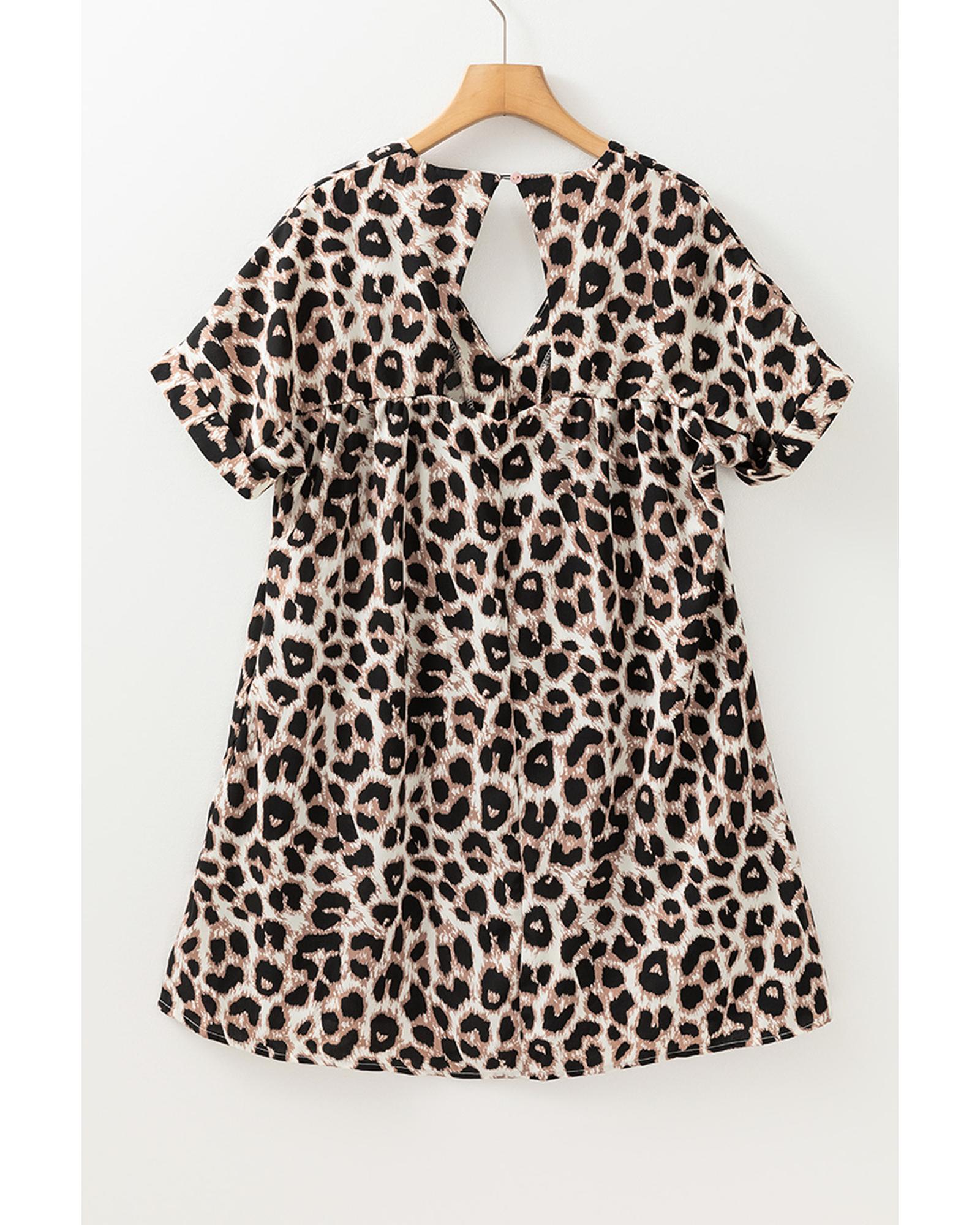 Khaki Cheetah Print Backless V Neck Loose Fit Mini Dress – M