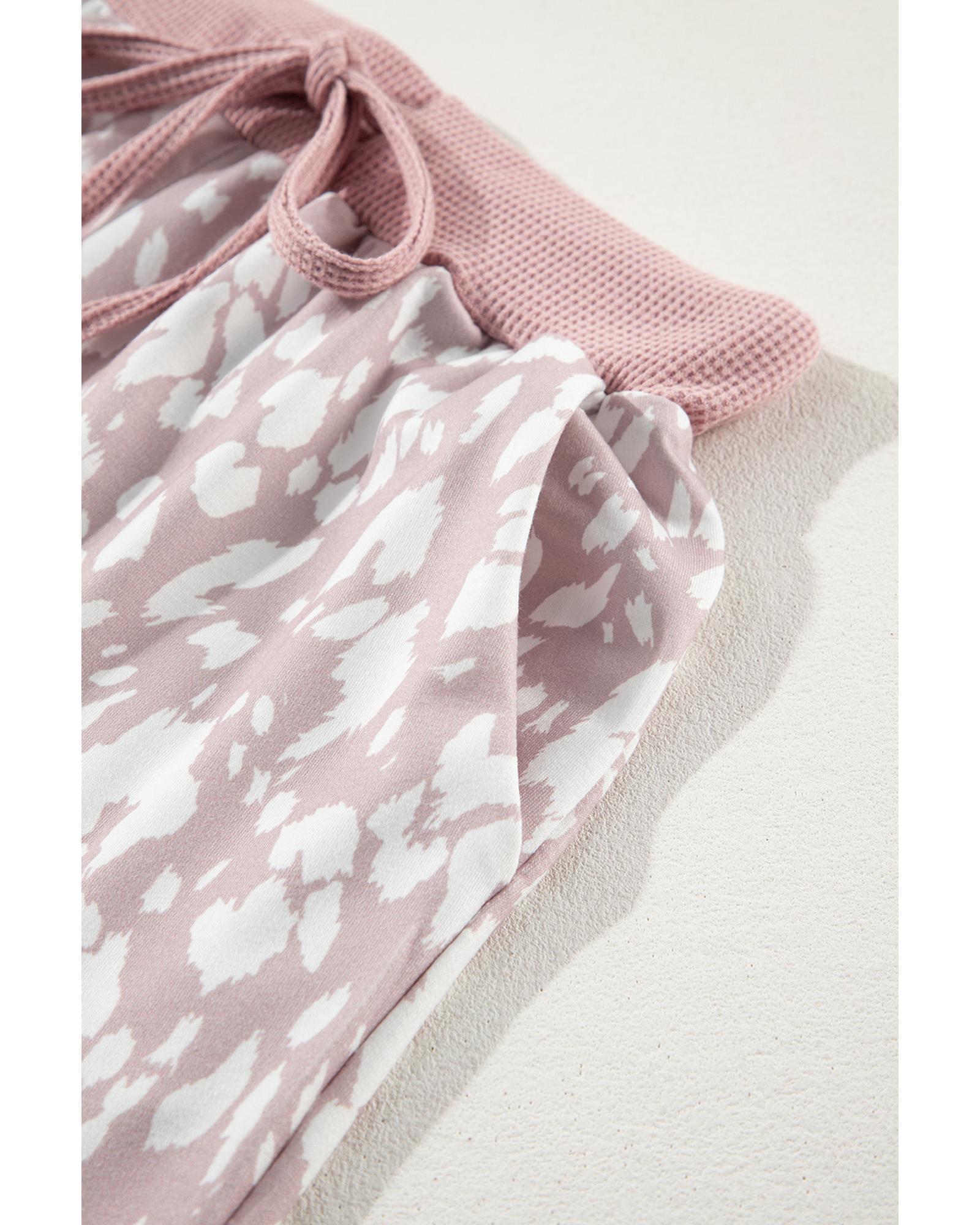 Khaki Classic Leopard Arched Hem Elastic Waist Casual Shorts – L