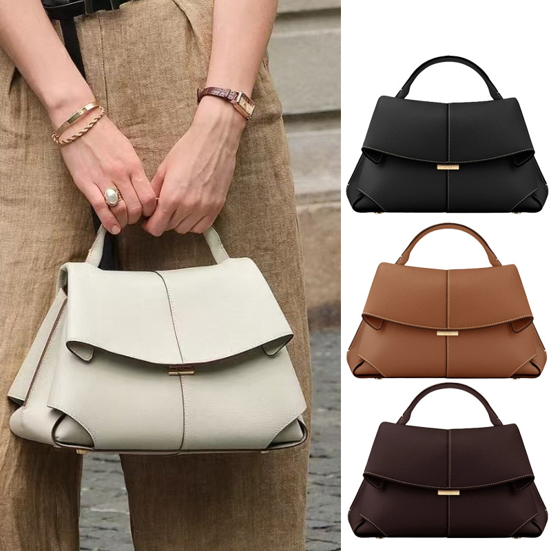 Elegant Genuine Cowhide Leather Top Handle Satchel & Crossbody Bag