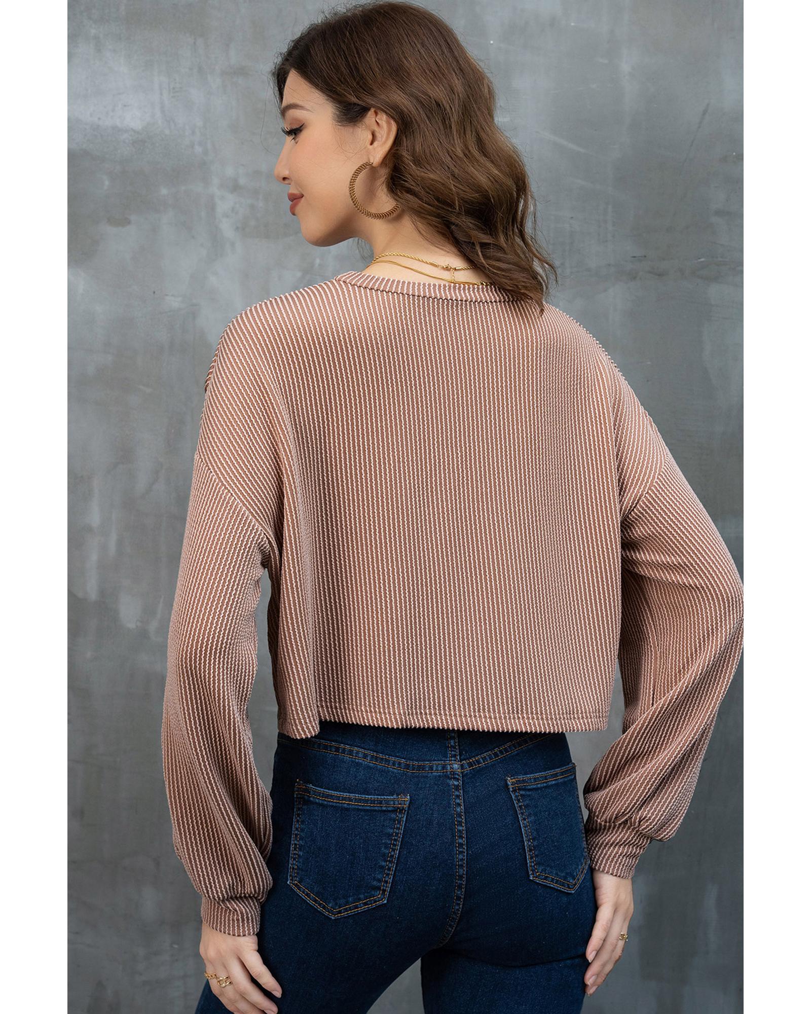 - Khaki Game Day Graphic Crop Rugby Football Corded Knit Top