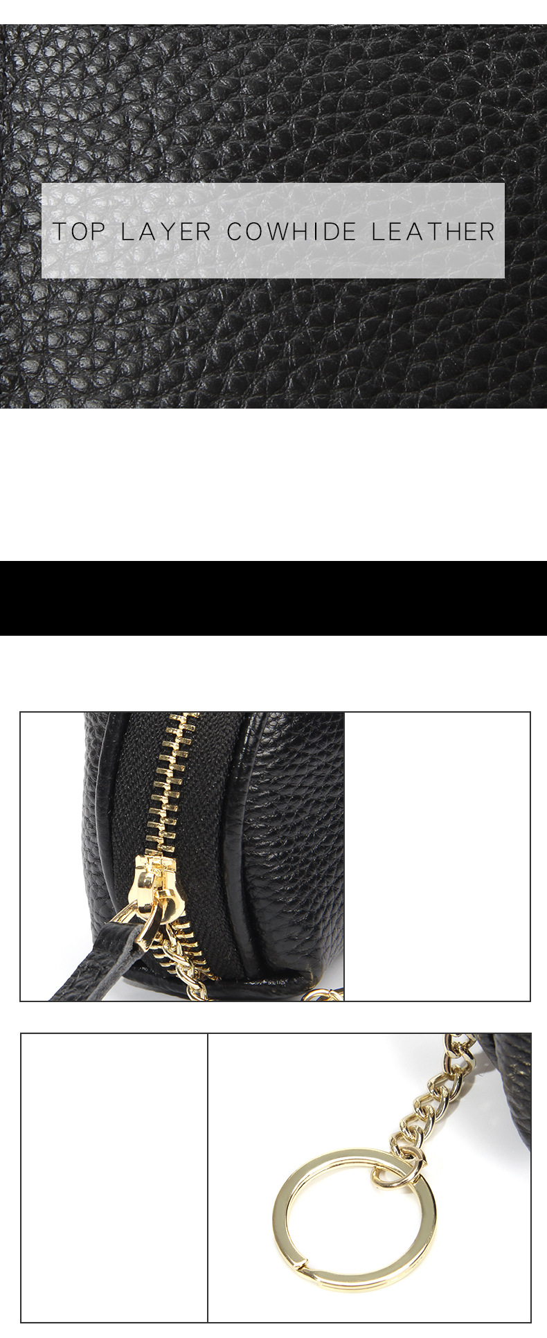 • Organized Interior: Though compact, the interior features a main compartment, a small slip pocket (ideal for a card or receipt), and an attached internal keyring chain to keep your keys handy and prevent them from getting lost.