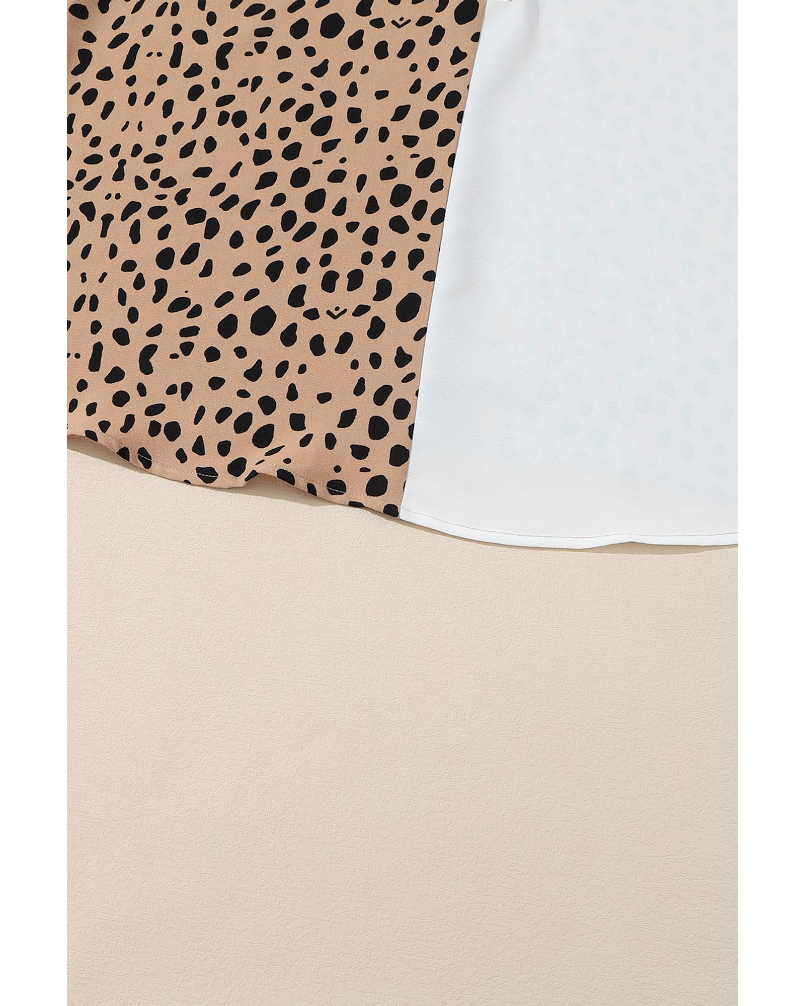 Khaki Leopard Contrast Half Button Casual Blouse – M