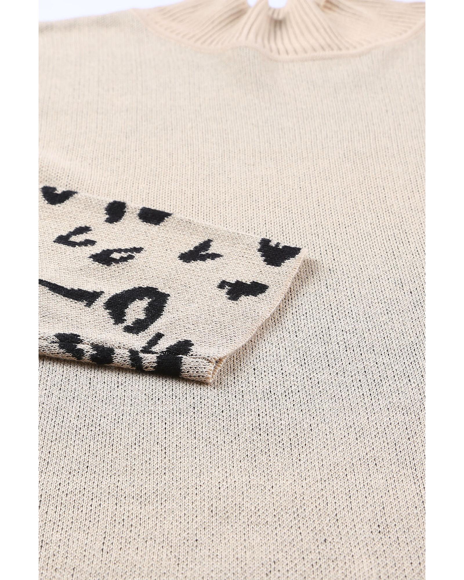 Khaki Leopard High Neck Side Slit Oversized Sweater – XL