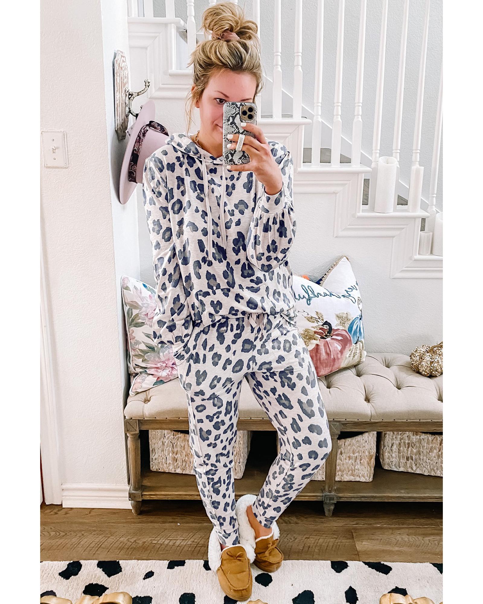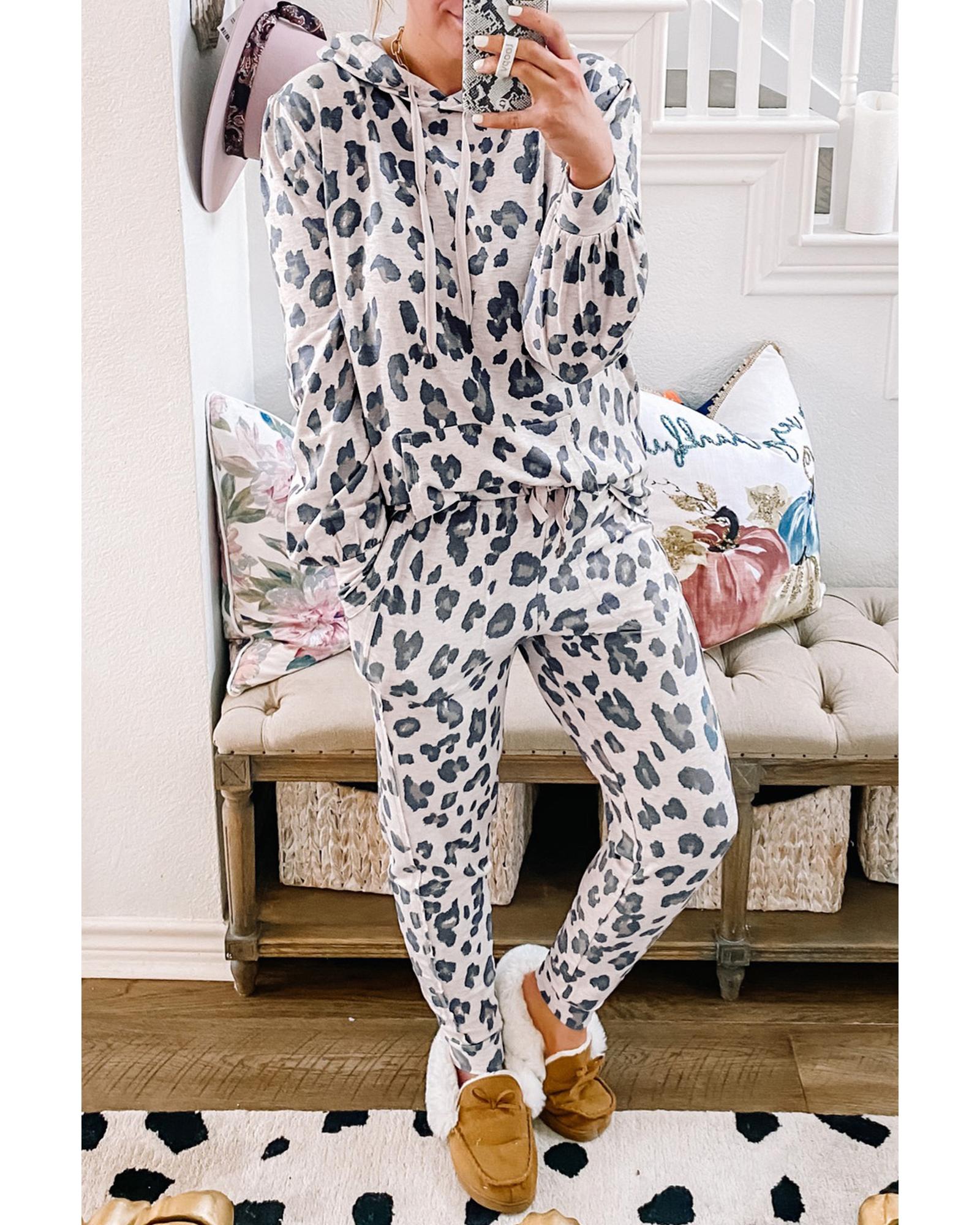 • Khaki leopard print drawstring hoodie and skinny pants lounge set