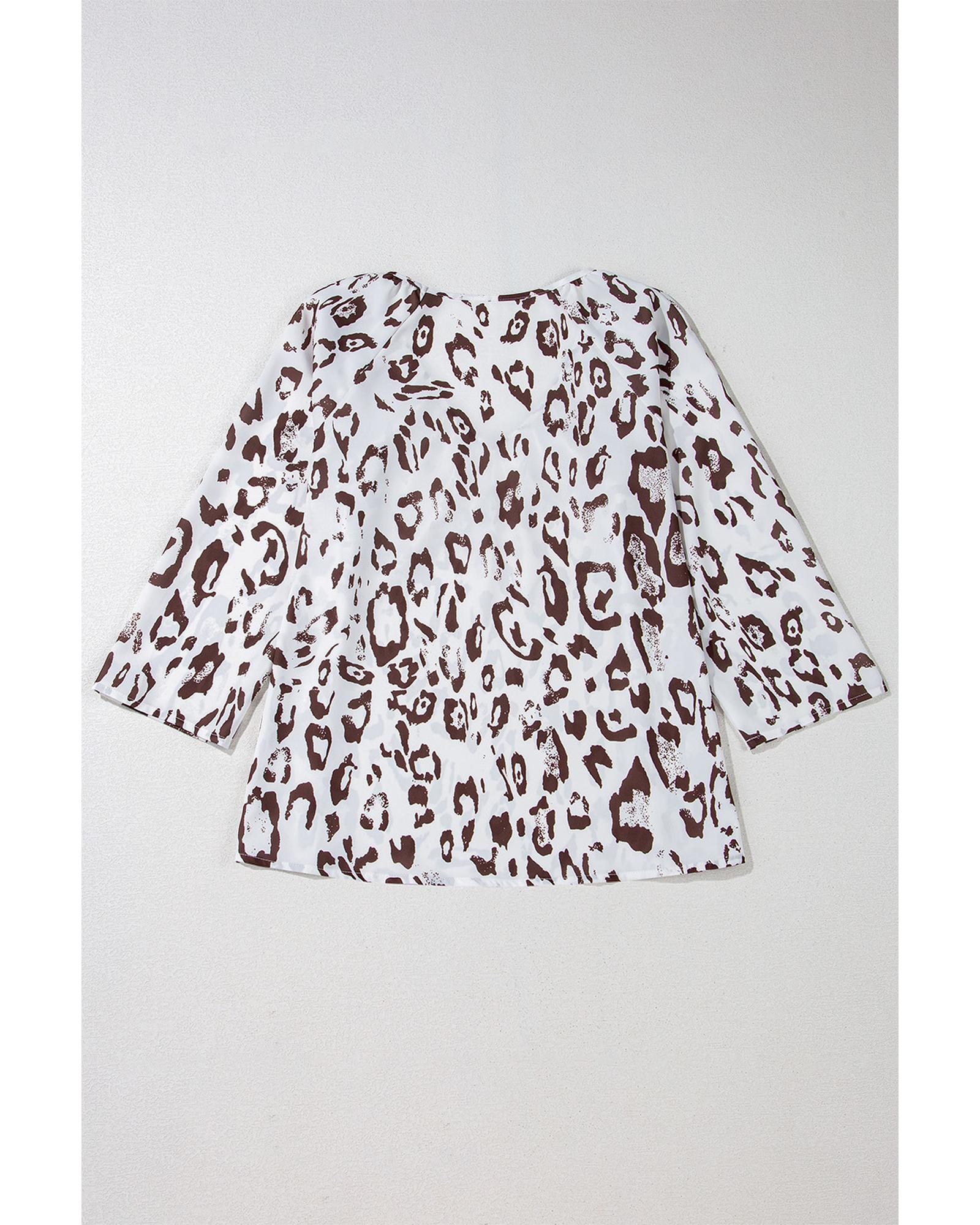 Khaki Leopard Print Ruched V Neck 3/4 Sleeve Blouse – S