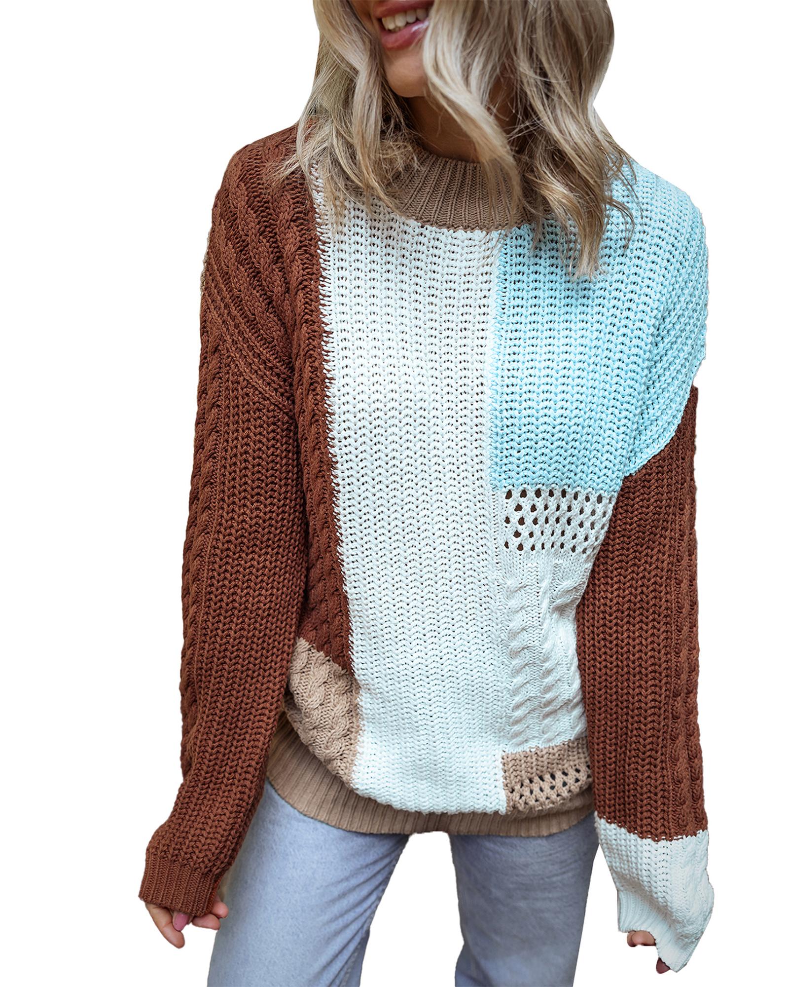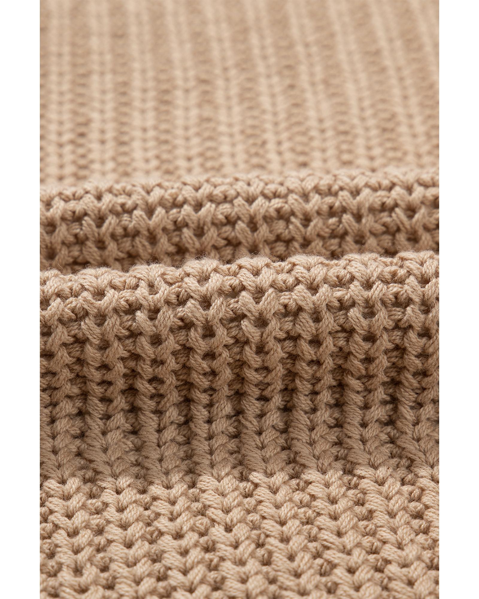 Khaki Mix Textured Knit Colorblock Patchwork Sweater – L