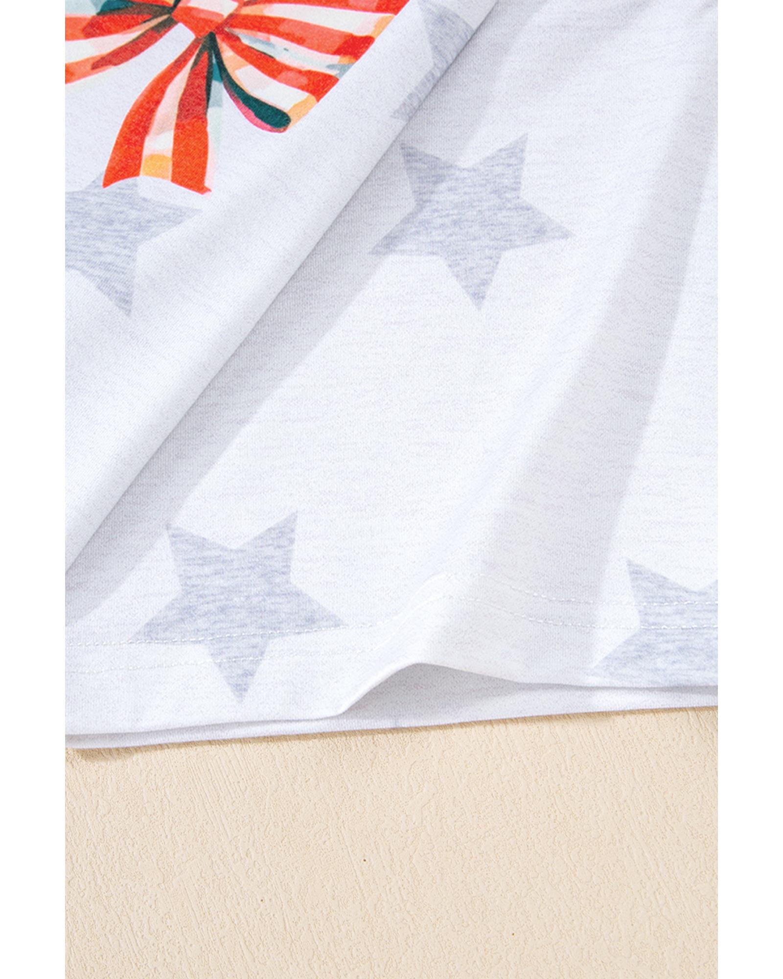 • Khaki Patriotic Flag Bow Graphic Starry Round Neck T