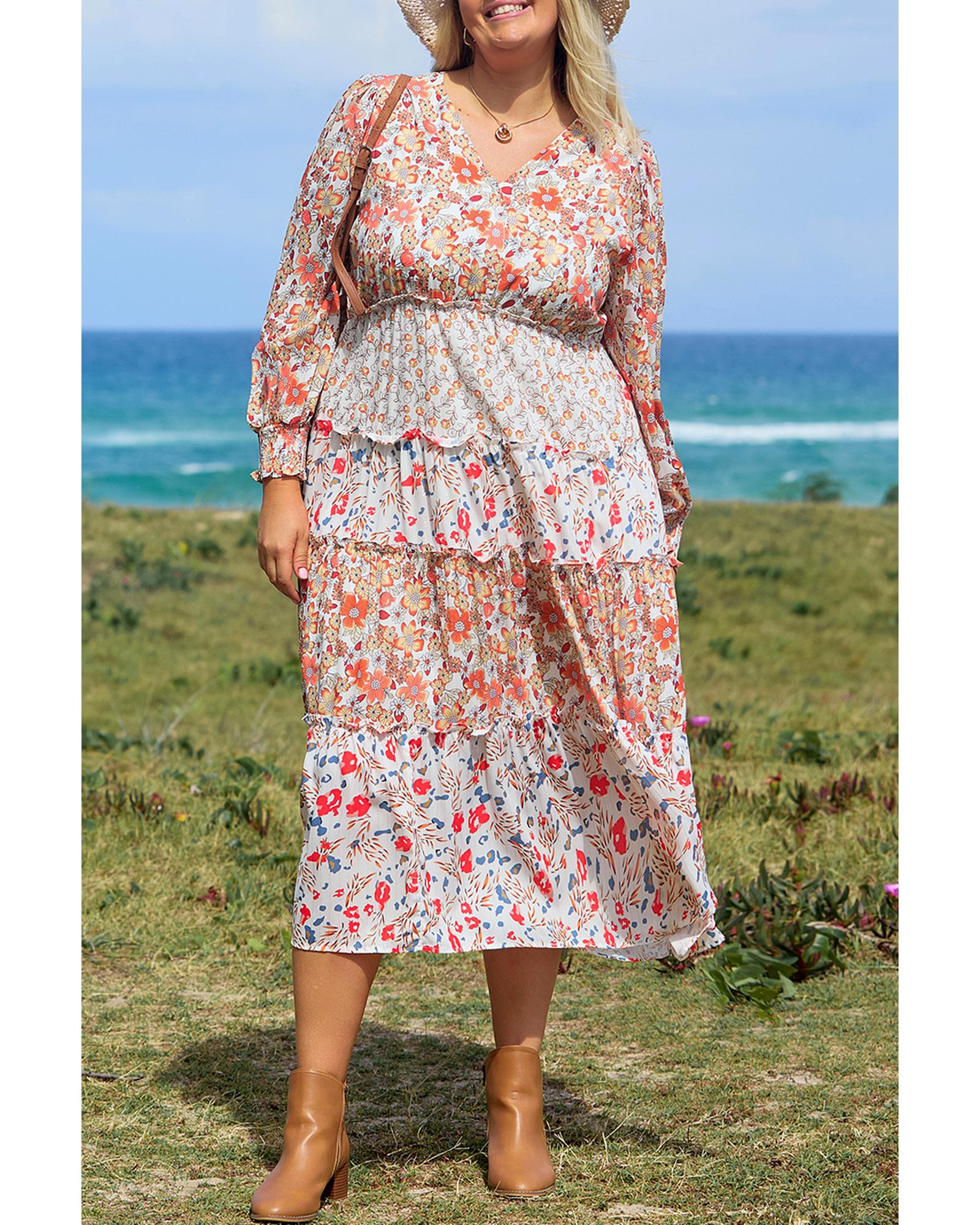 - Khaki Plus Size Floral Tiered Ruffle Maxi Dress