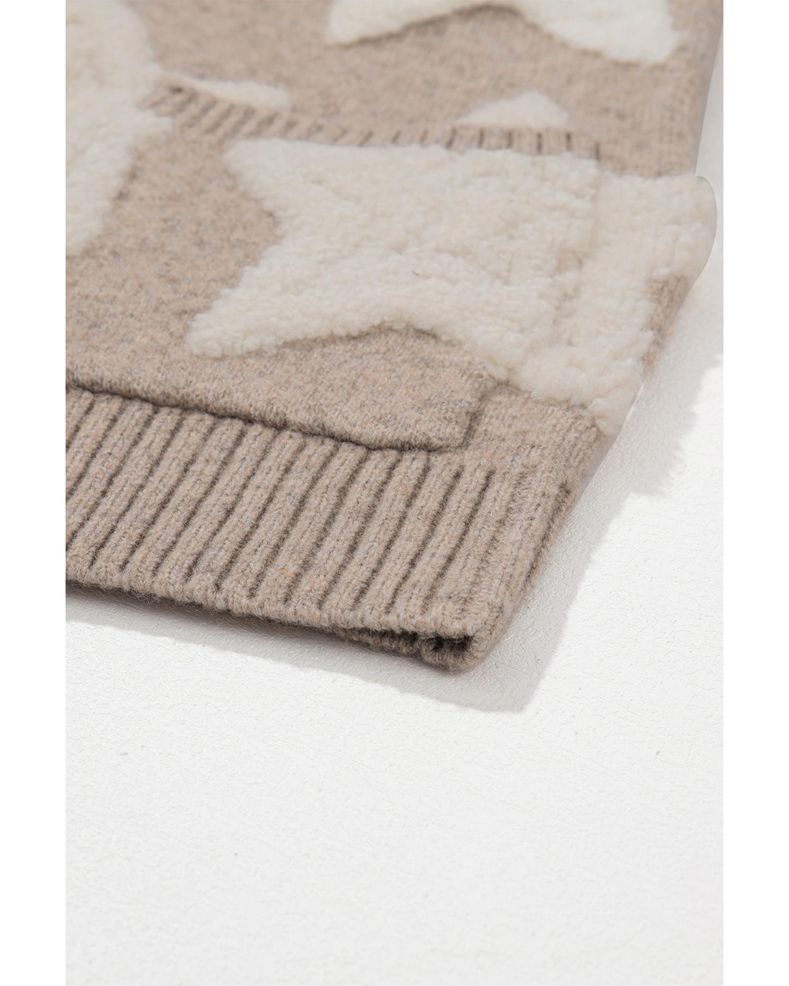 Khaki Sherpa Star Pattern Textured Sweater Cardigan with Pockets – XL