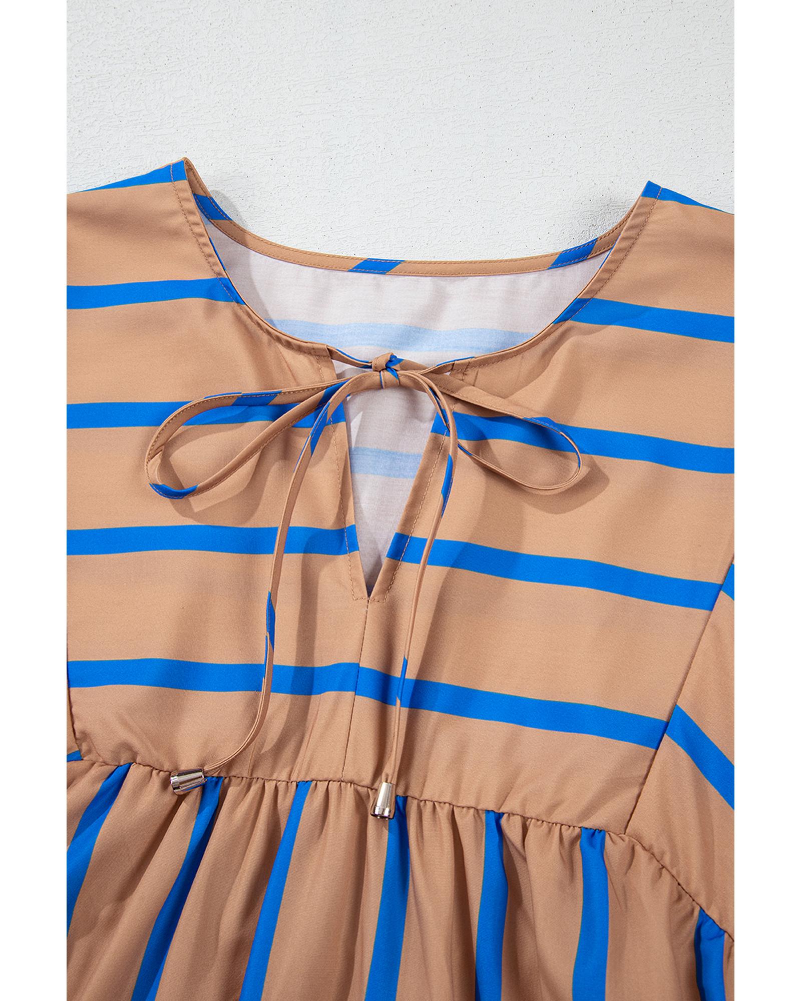 Khaki Stripe Contrast Striped Print 3/4 Sleeve Babydoll Plus Size Dress - 4X