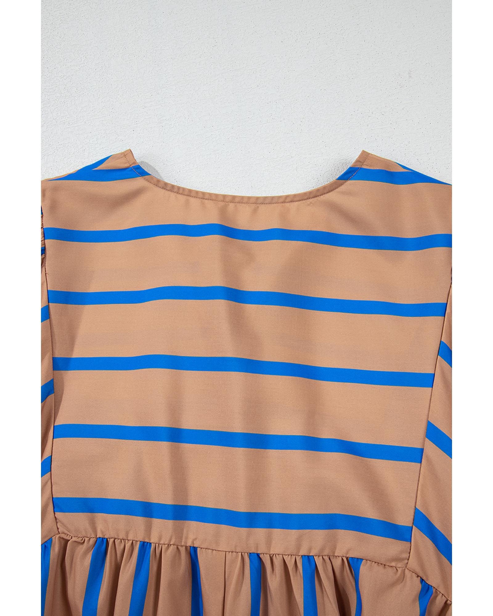 Khaki Stripe Contrast Striped Print 3/4 Sleeve Babydoll Plus Size Dress – 3X