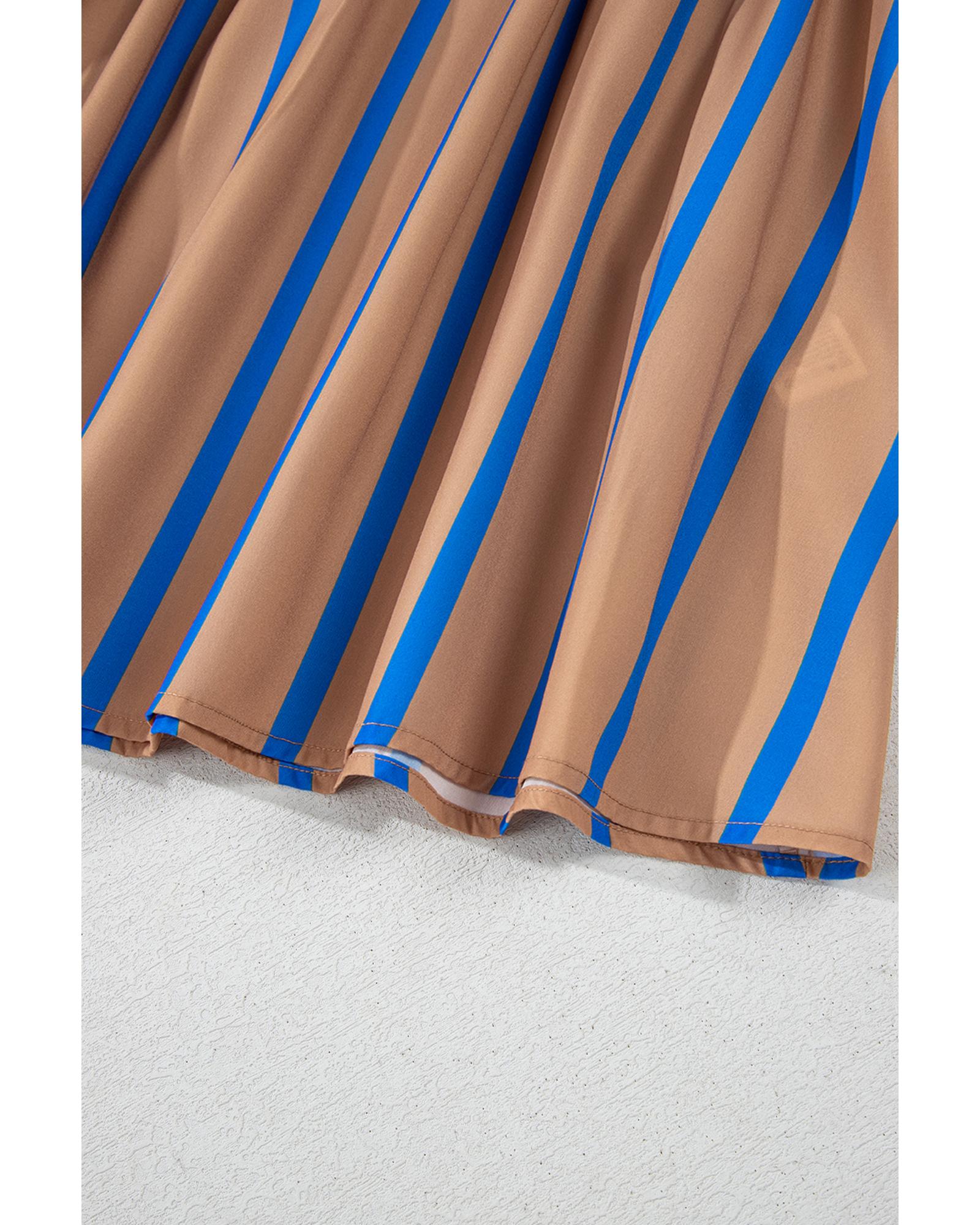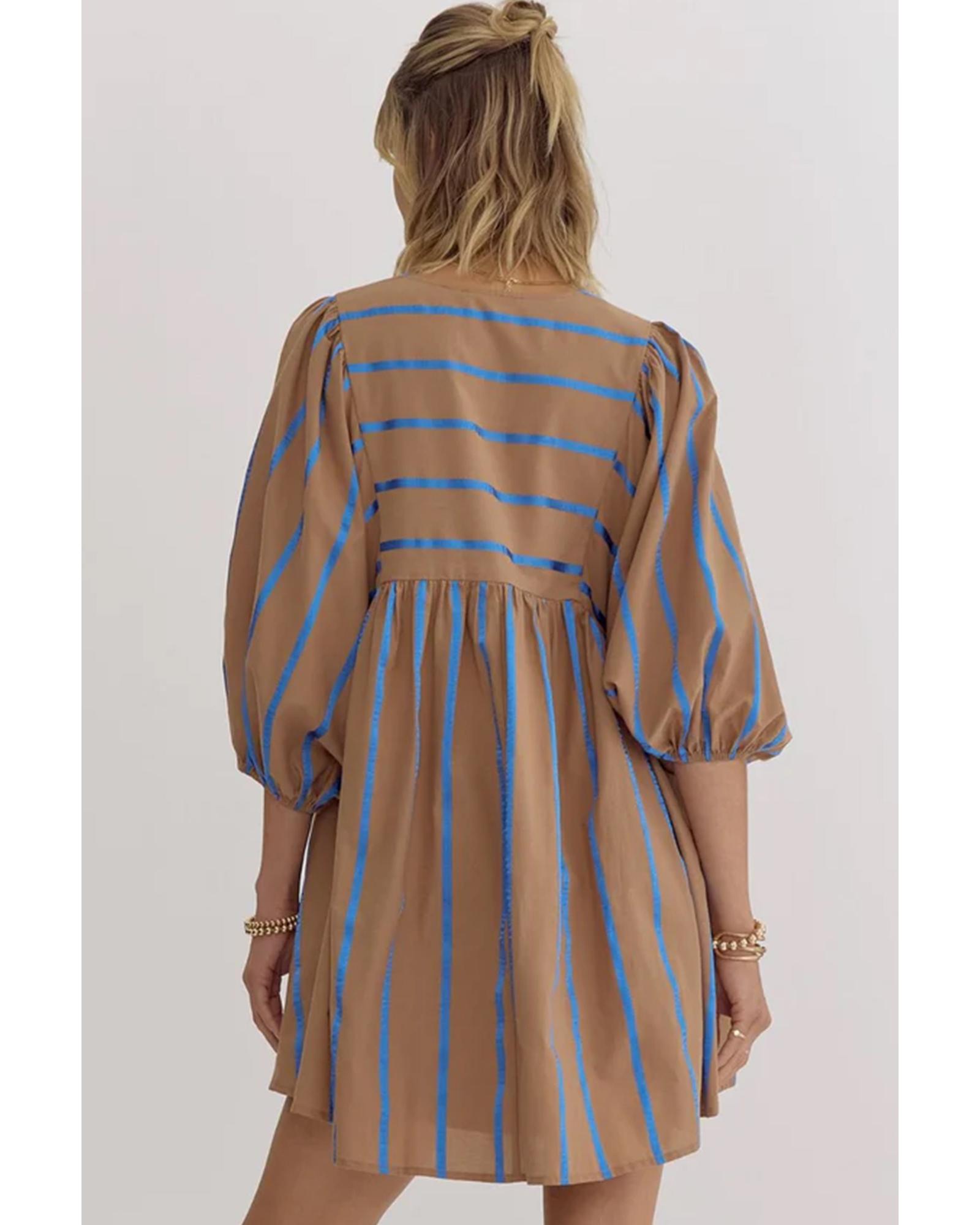 Khaki Stripe Contrast Striped Print 3/4 Sleeve Babydoll Plus Size Dress – 4X