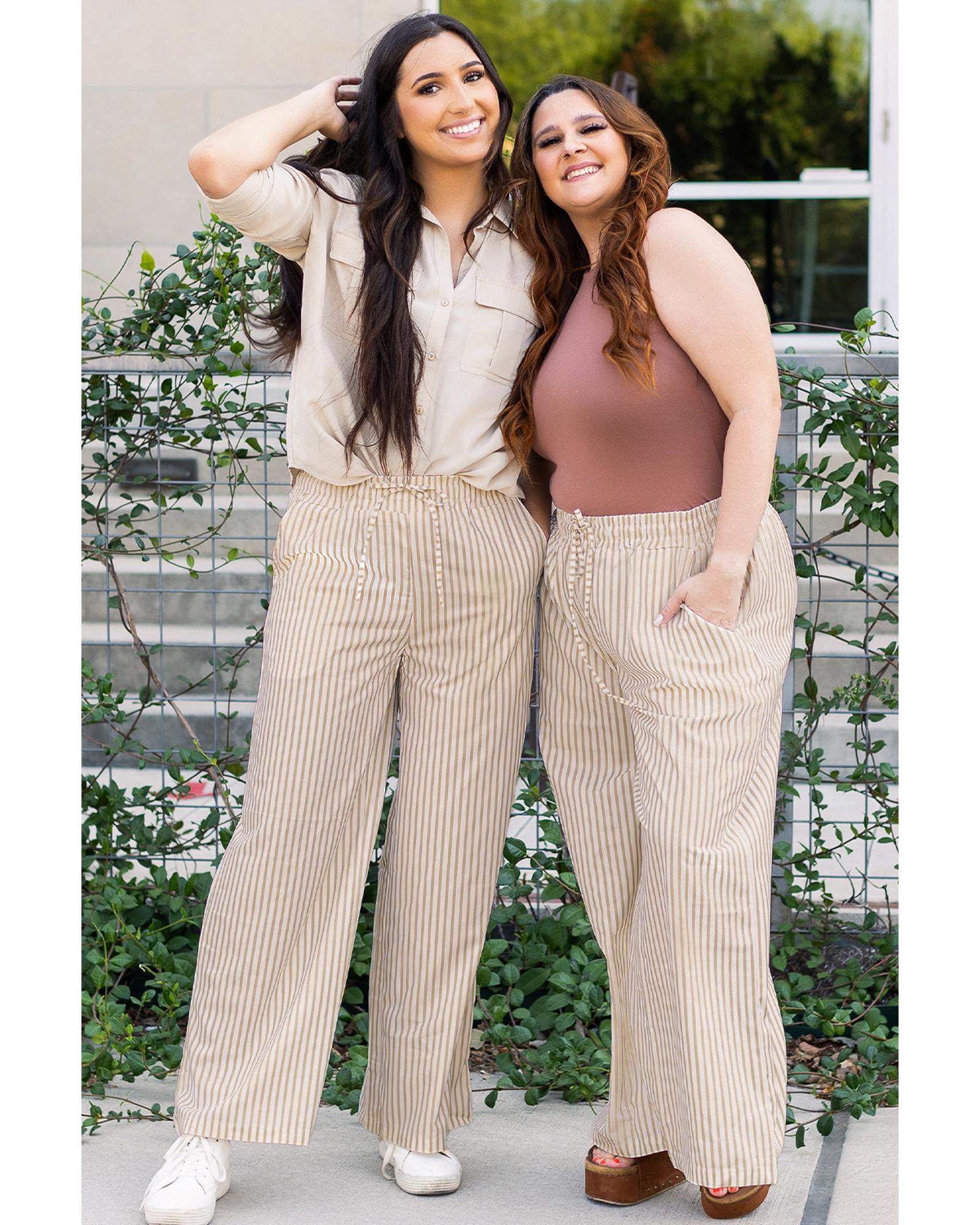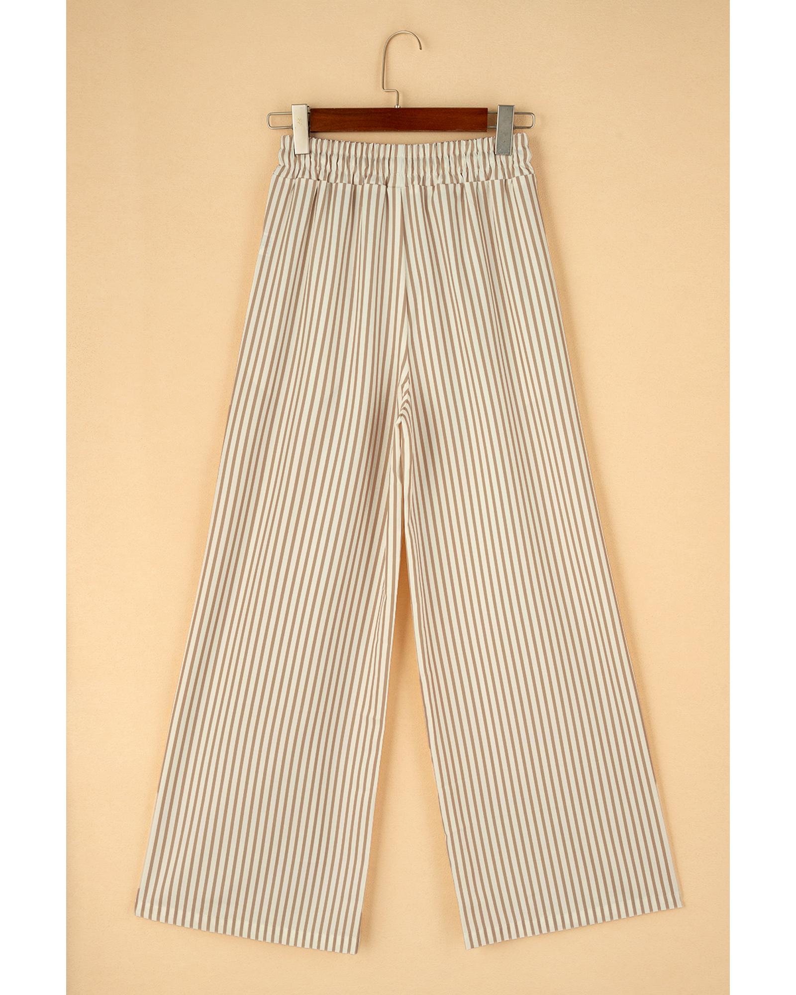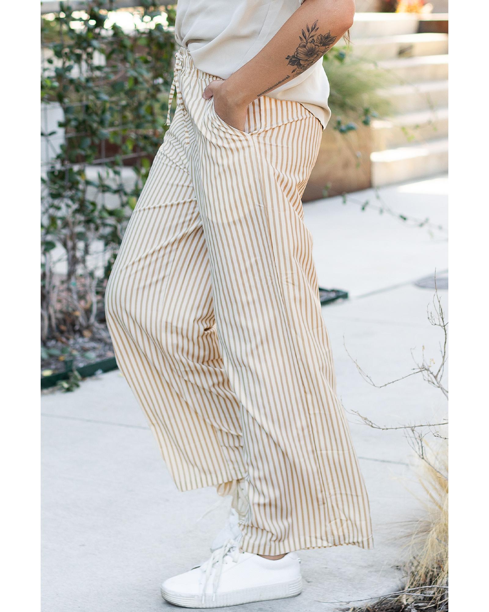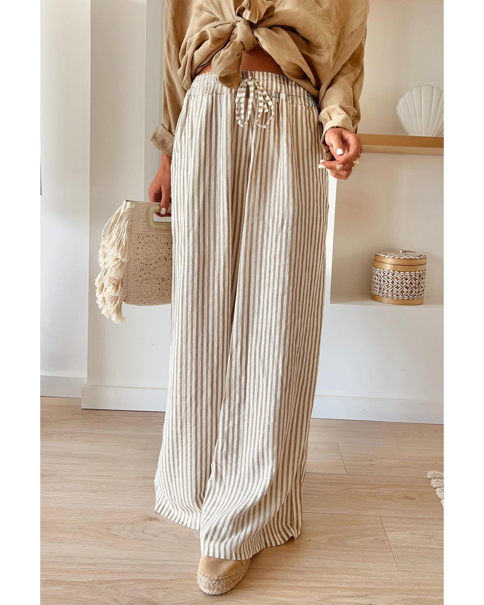 Khaki Stripe Print Wide Leg Drawstring Pants – XL