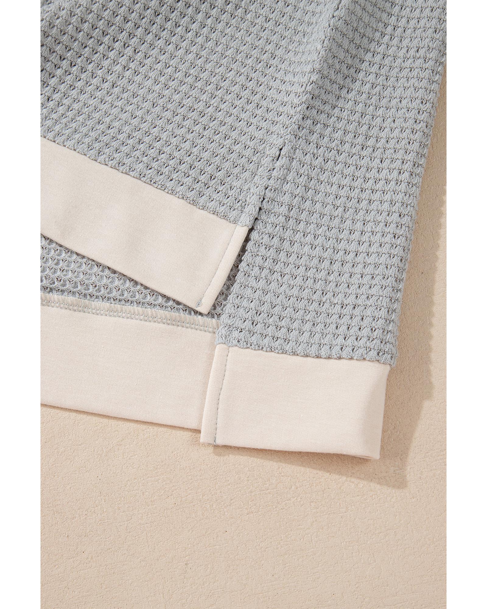 Mineral Blue Solid Waffle Knit Patchwork Raglan Sleeve Sweatshirt - L