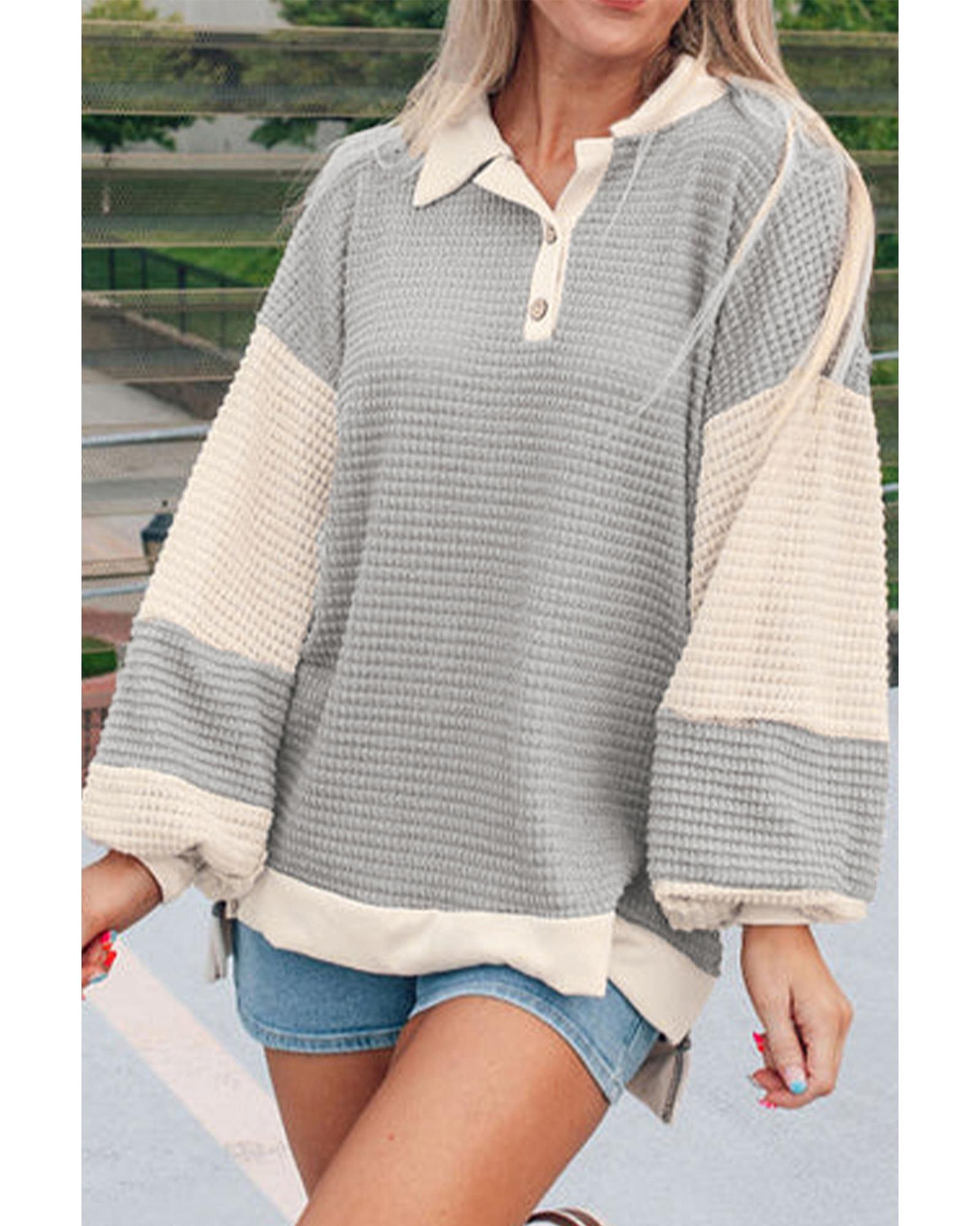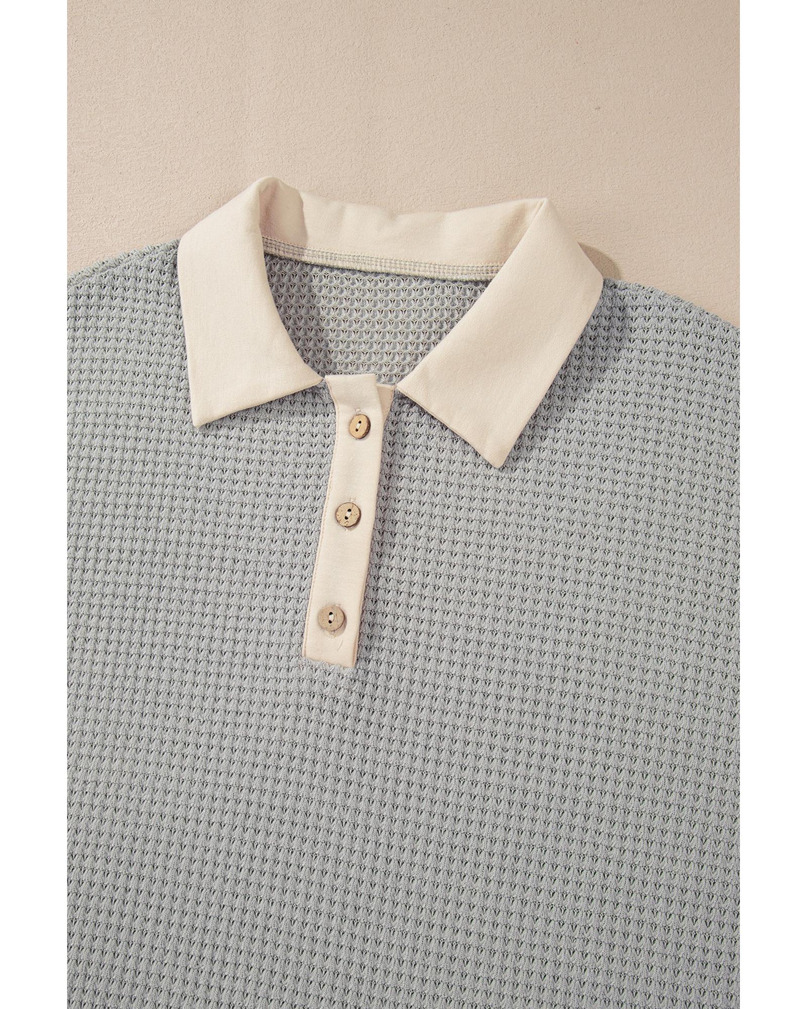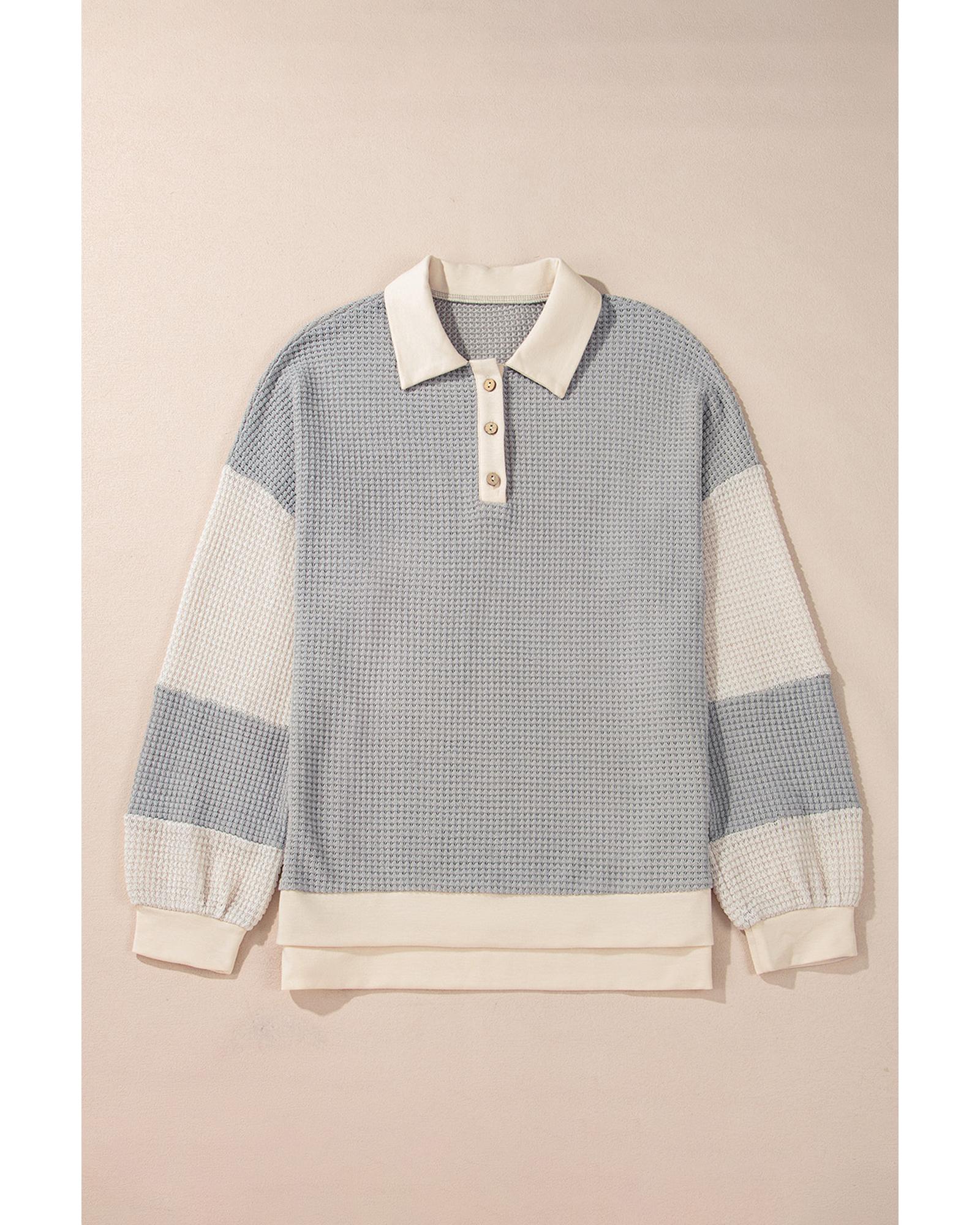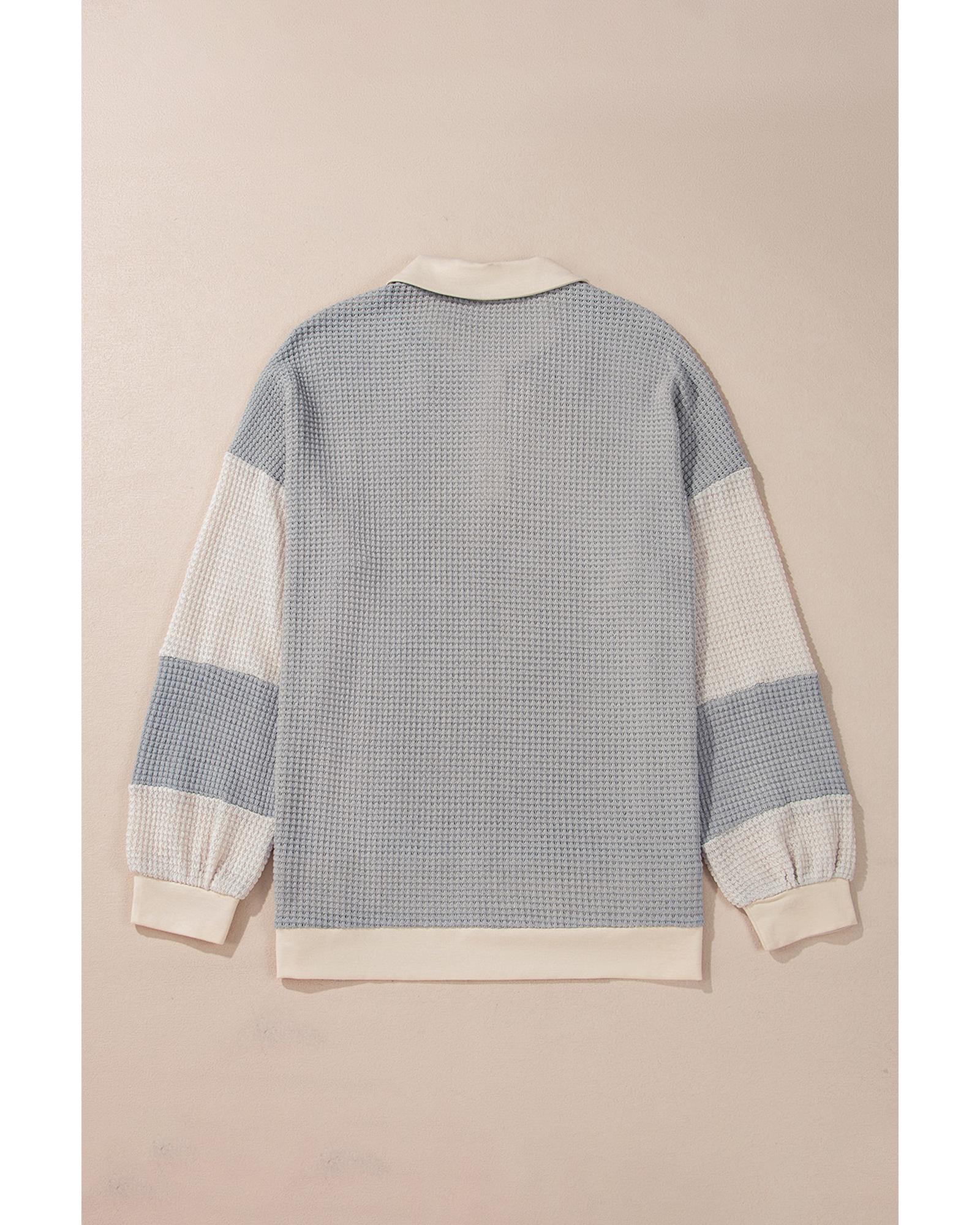 Mineral Blue Solid Waffle Knit Patchwork Raglan Sleeve Sweatshirt - S