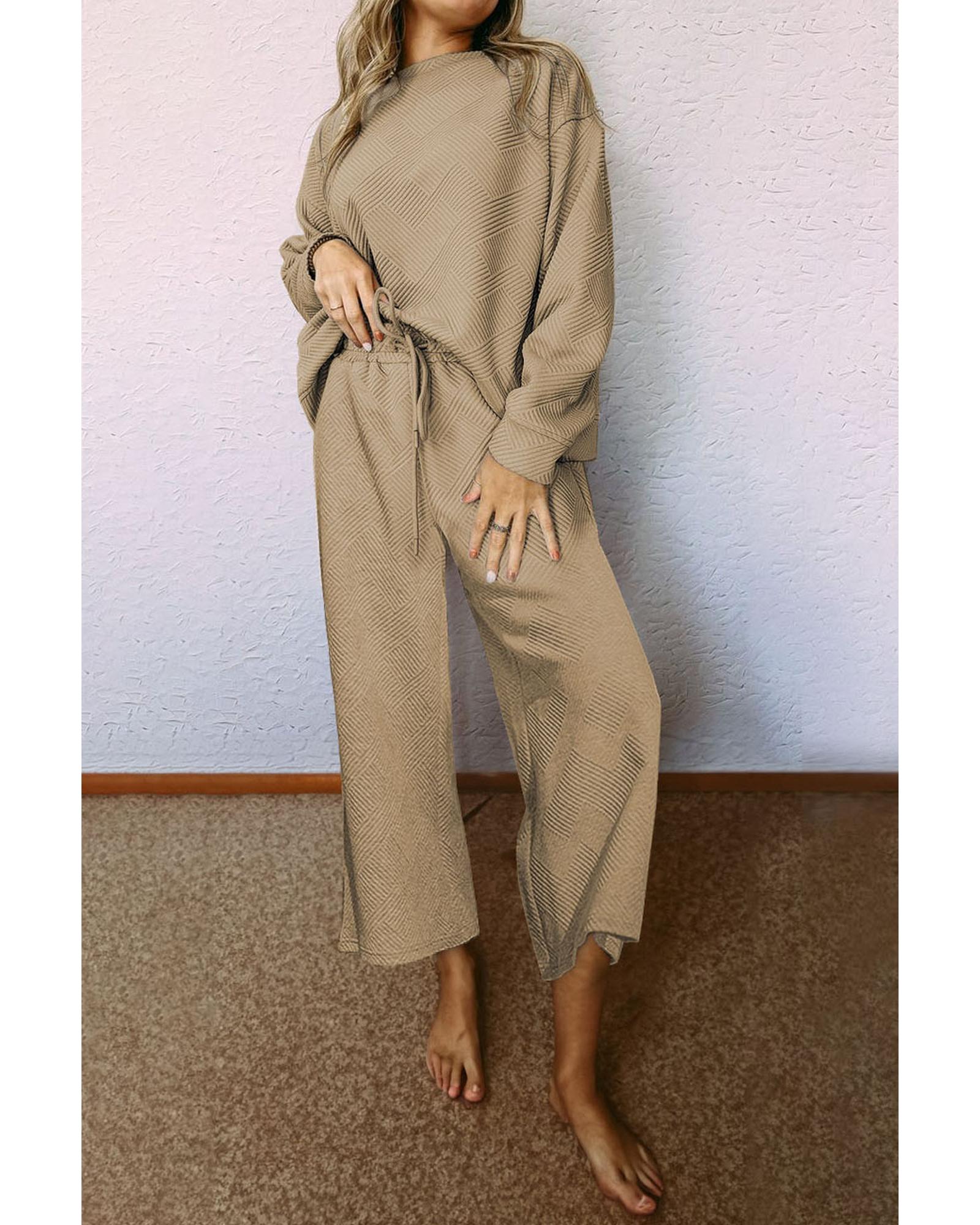 Khaki Ultra Loose Textured 2pcs Slouchy Outfit – S