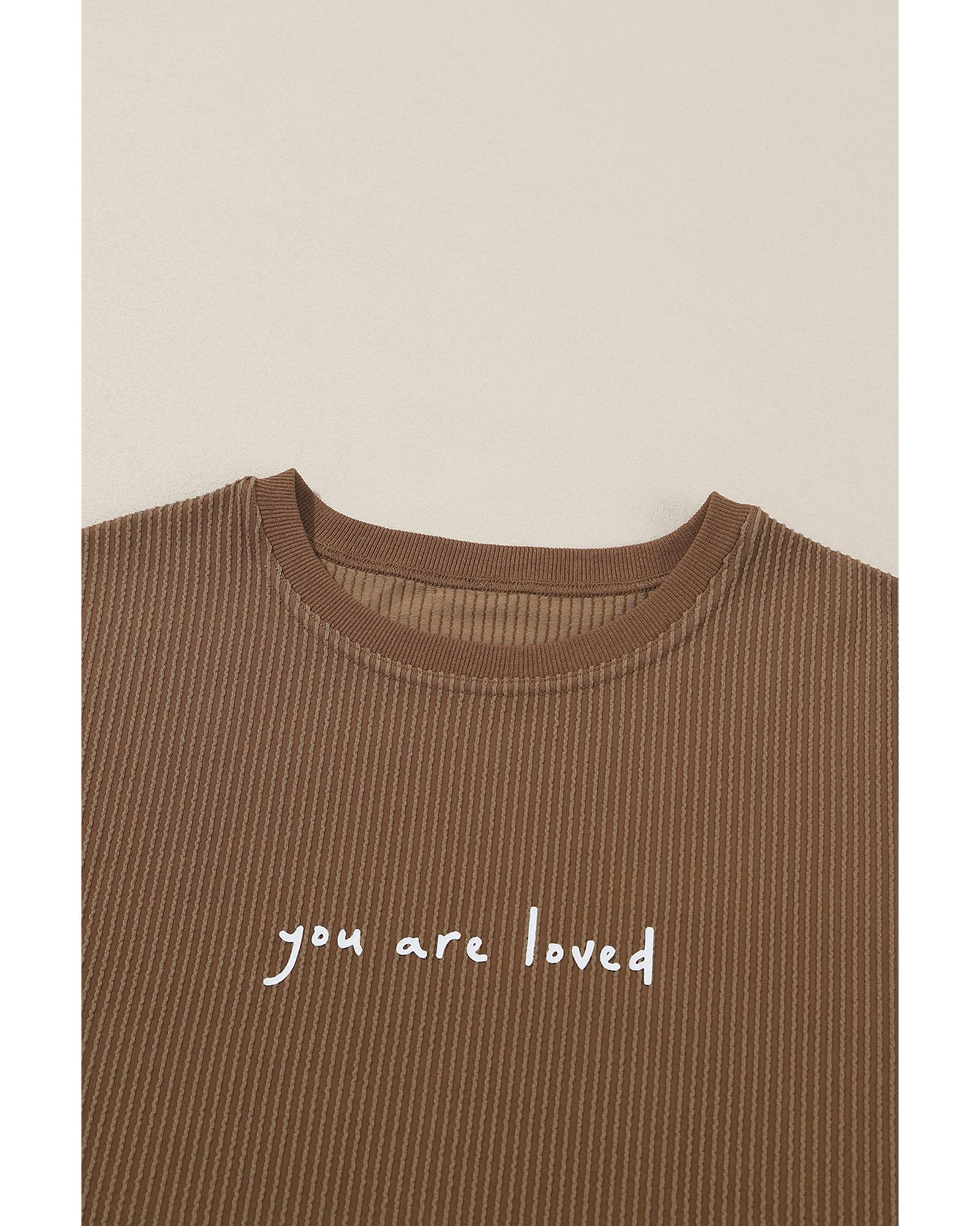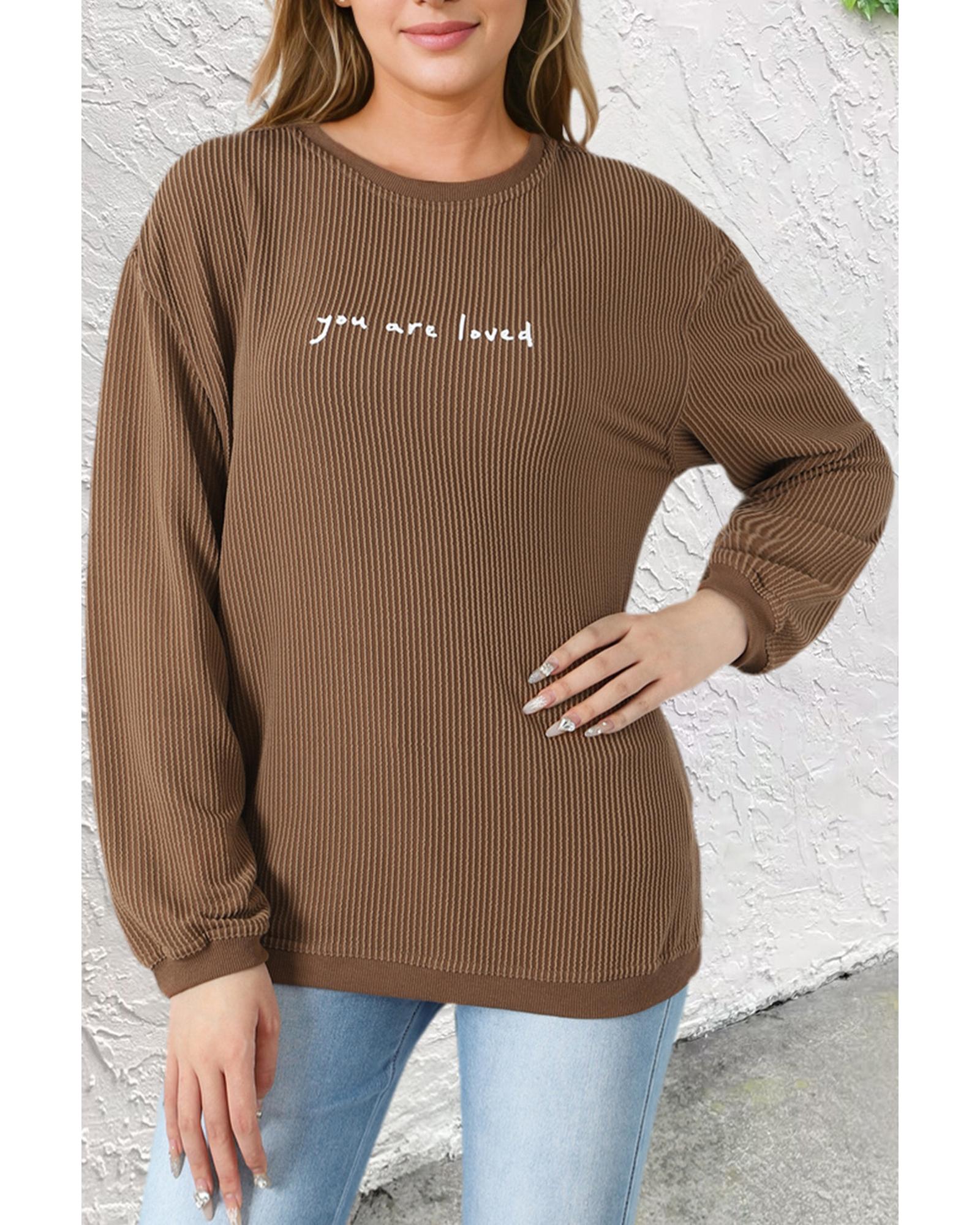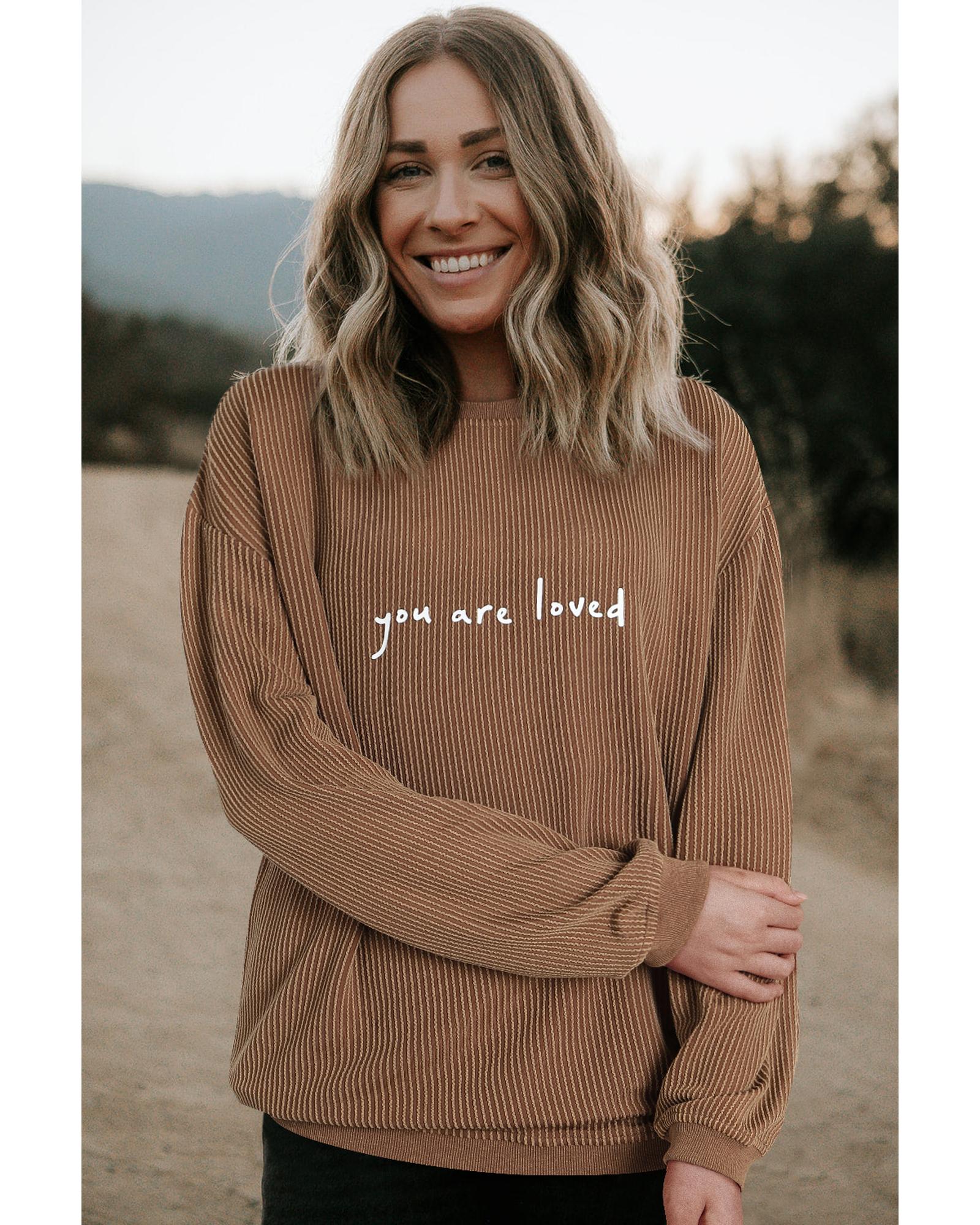 Khaki You Are Loved Print Corduroy Sweatshirt – XL