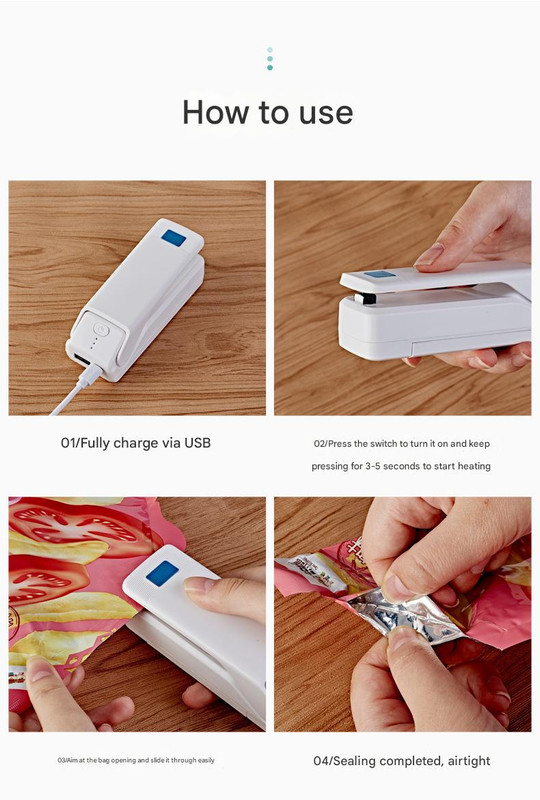 Keep your snacks fresh and your gadgets charged with this incredibly versatile Mini Bag Sealer! This compact and portable device is a must-have for any modern kitchen, office, or for taking on the go. Say goodbye to stale chips and messy bags, and hello to ultimate convenience.