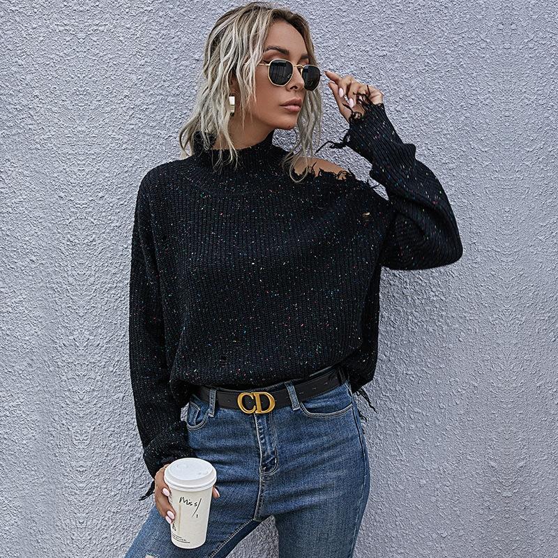 • 1 x Ladies Loose Off Shoulder Ripped Long-Sleeved Turtleneck Autumn Knitted Sweater