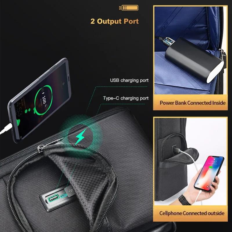 • 1 x Bopai 61 125031 Large Capacity First Layer Cowhide Business Laptop Backpack with Usb and Type C Port