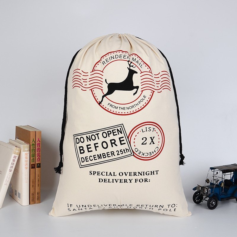Large Christmas XMAS Hessian Santa Sack Stocking Bag Reindeer Children Gifts Bag, Cream – Reindeer Mail