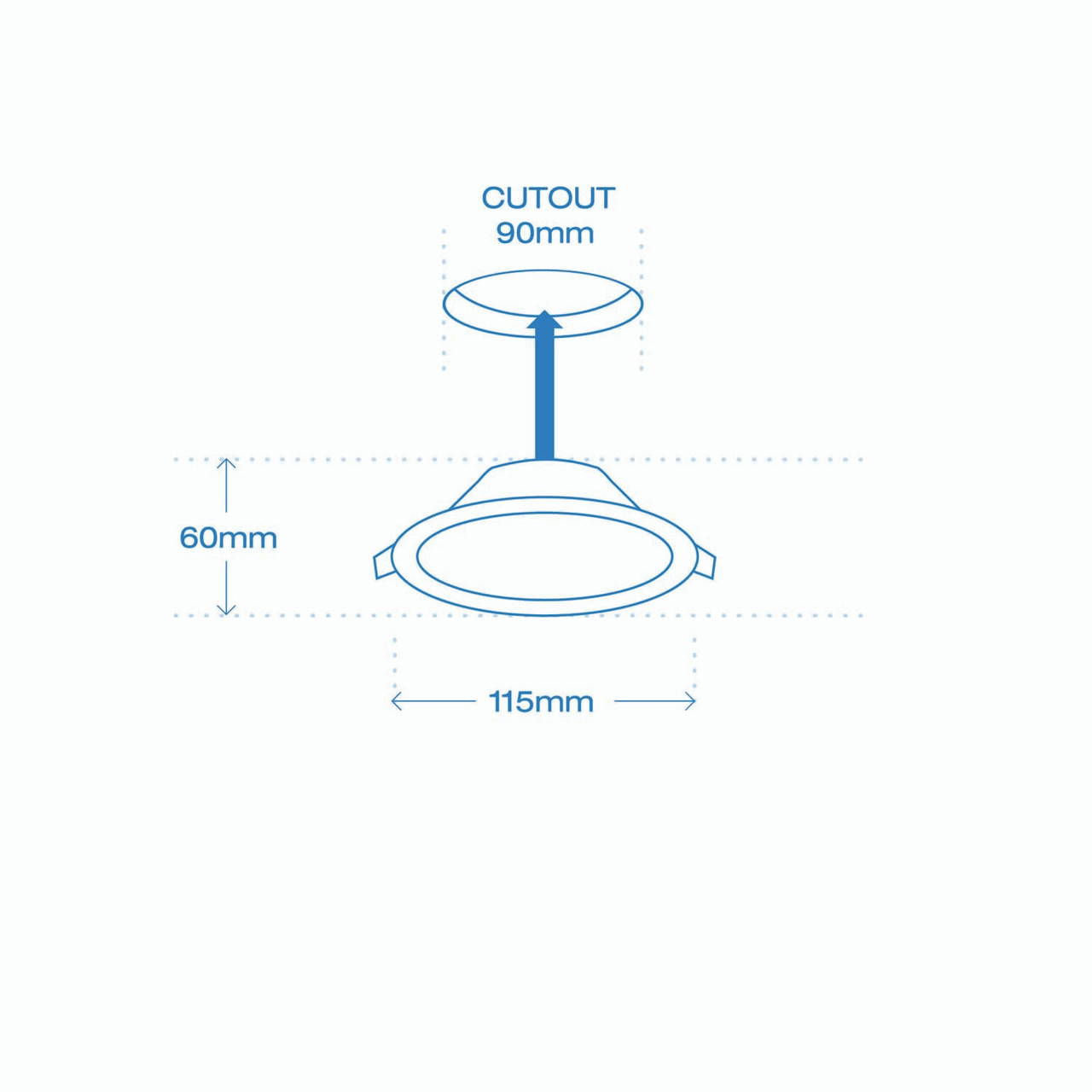 • Professional Installation Required: The downlight requires a 240V plug fitting and a 90mm cut-out ceiling hole for installation by a qualified electrician.