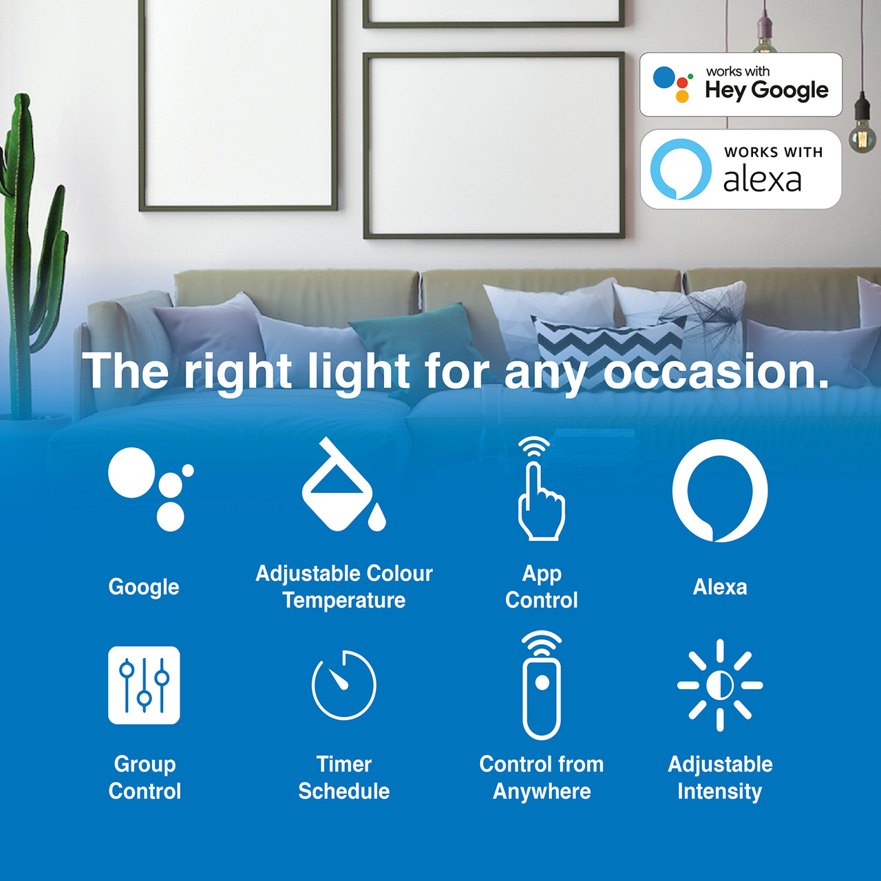 • Voice Control: Easily compatible with Amazon Alexa and Google Assistant for hands-free lighting control.