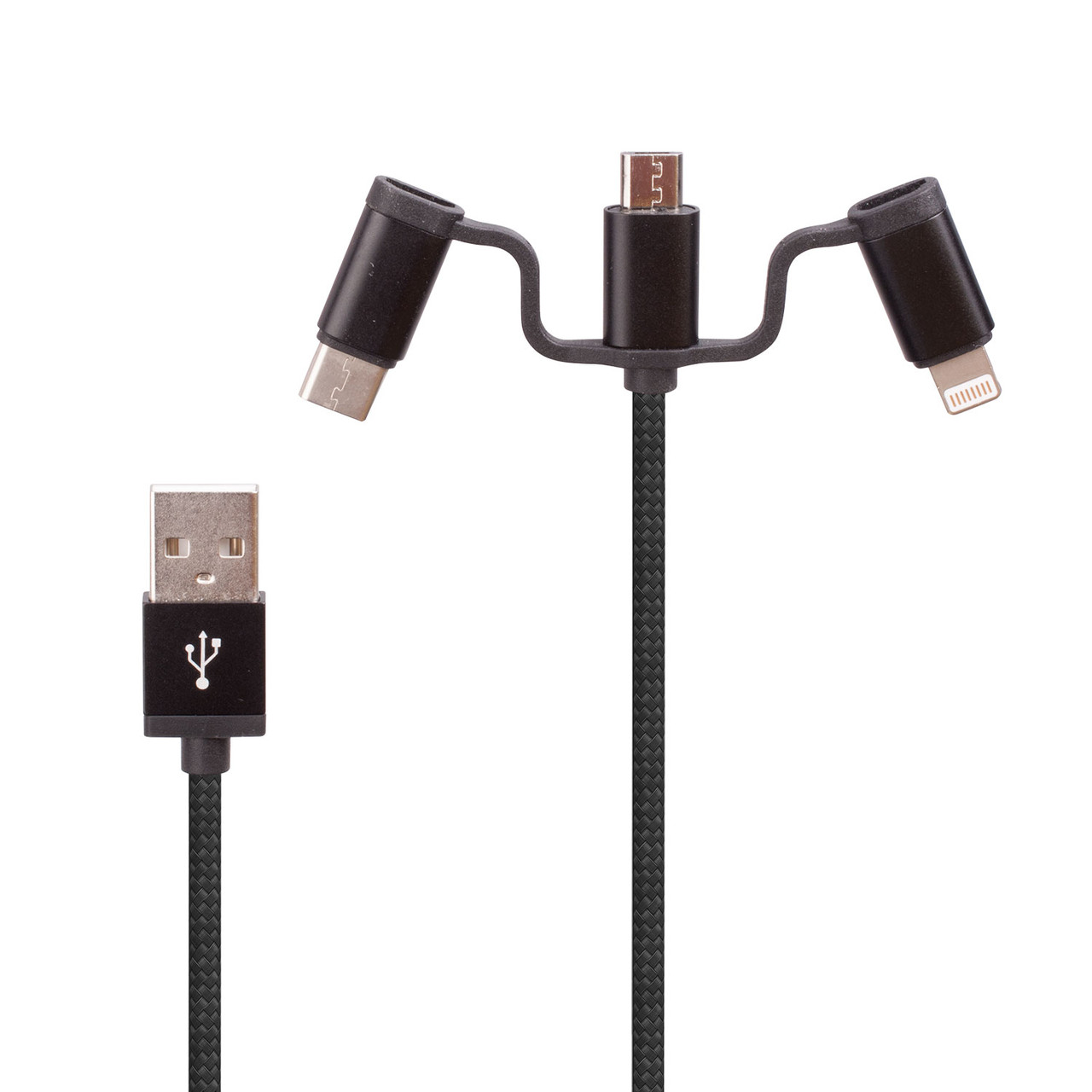 - Includes a 3 in 1 charging cable with USB Type C, micro-USB, and 9-pin connectors