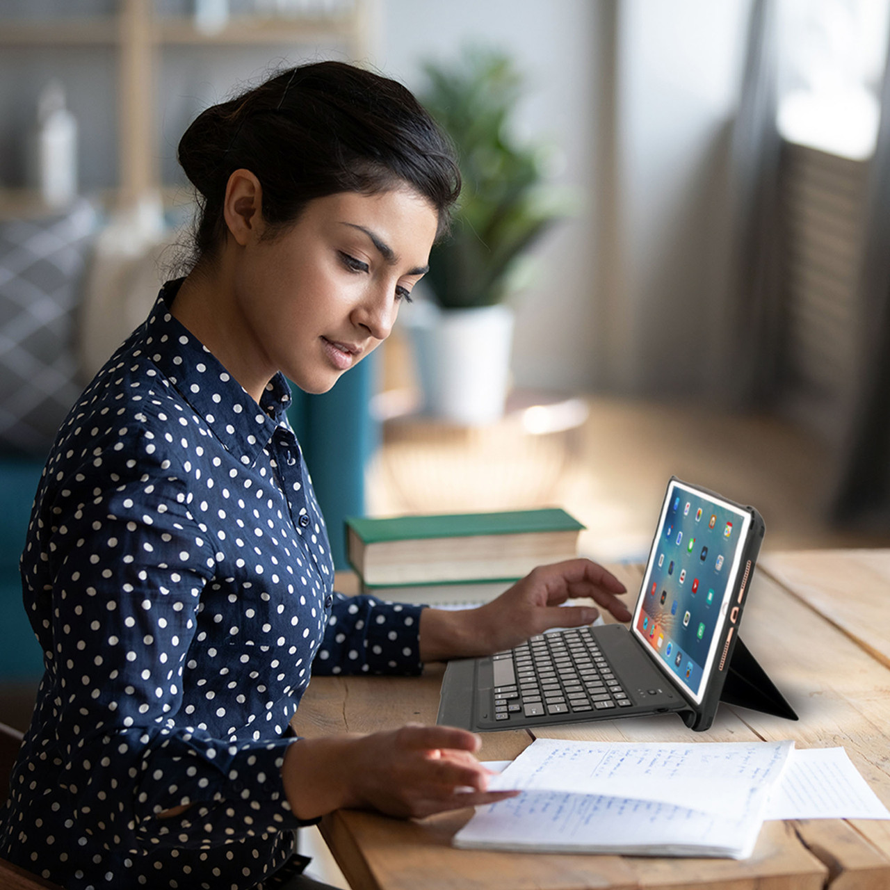This versatile keyboard case transforms your 10.2-inch iPad into a mini laptop with tactile keys that offer a smooth and responsive typing experience. Whether you’re typing up reports, writing emails, or browsing online, this wireless keyboard gives you full typing capabilities via Bluetooth no cables needed.