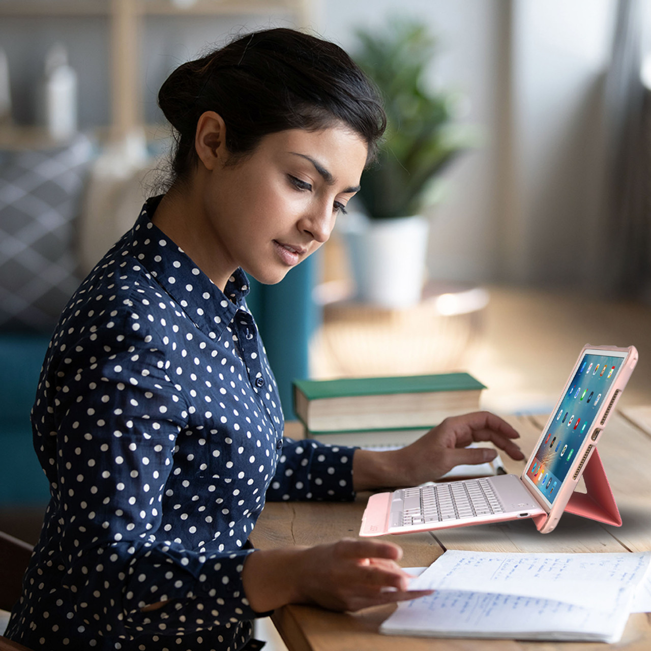 This versatile keyboard case transforms your 10.2-inch iPad into a mini laptop with tactile keys that offer a smooth and responsive typing experience. Whether you’re typing up reports, writing emails, or browsing online, this wireless keyboard gives you full typing capabilities via Bluetooth no cables needed.