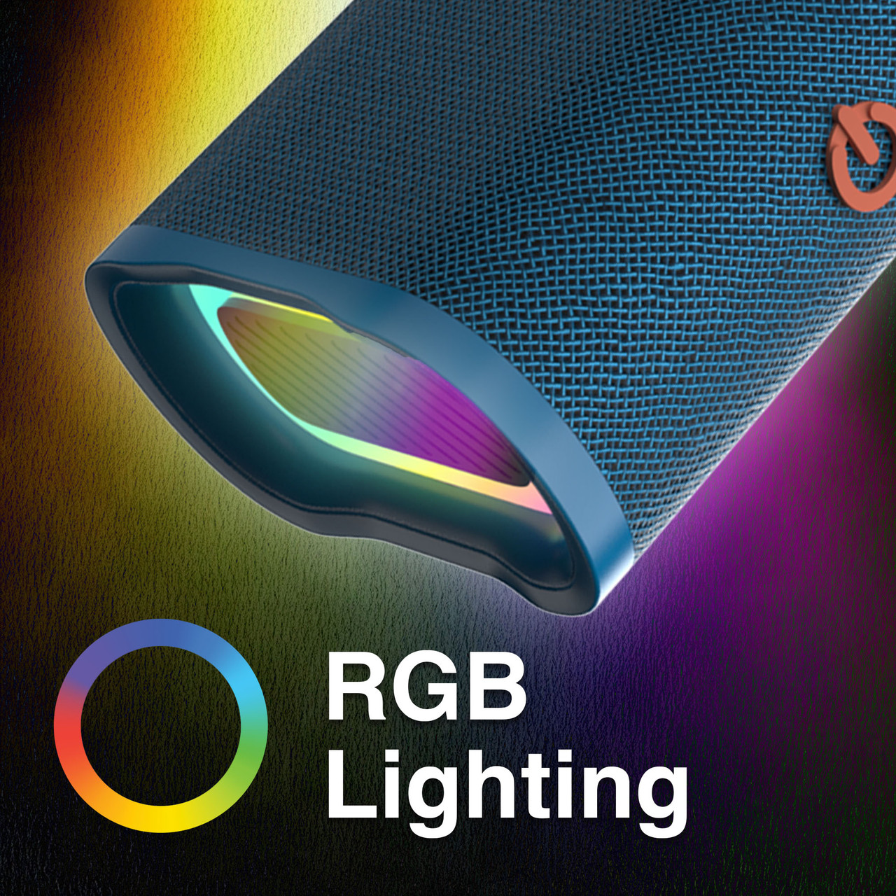 • RGB lighting compact design Portable with dynamic light effects and a carry strap.