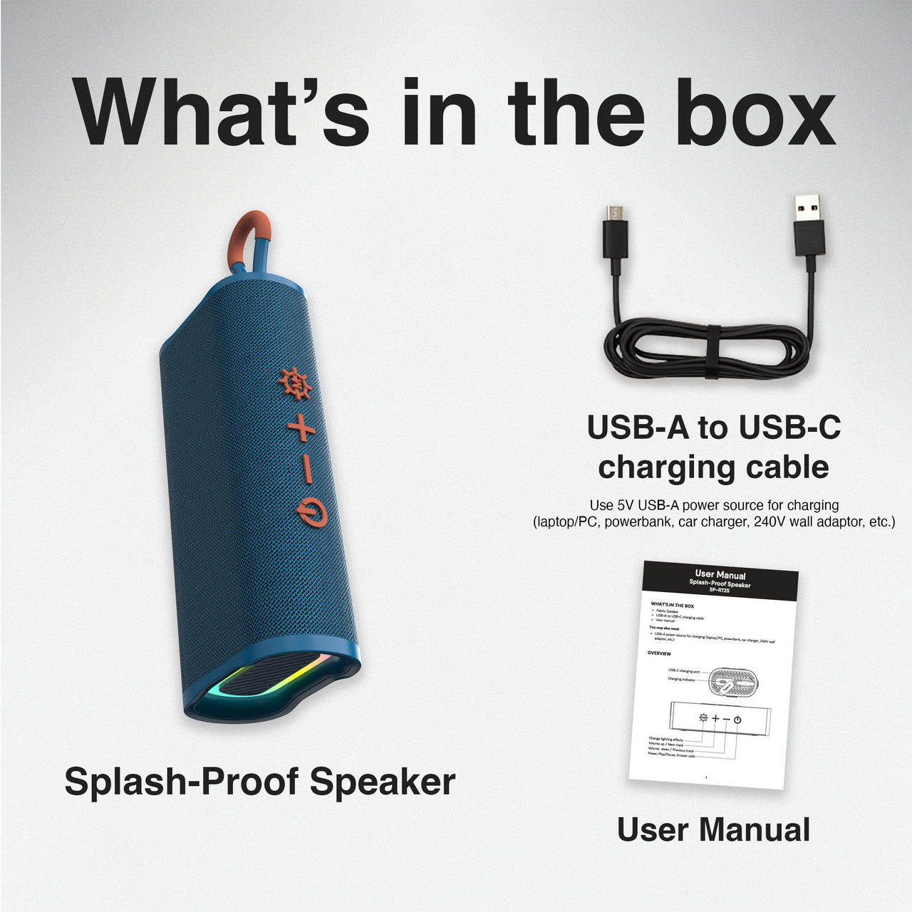 For outdoor music lovers, adventurers, and partygoers, the Laser Splash-Proof Speaker delivers portable sound, lighting, and splash-proof protectionwherever life takes you.