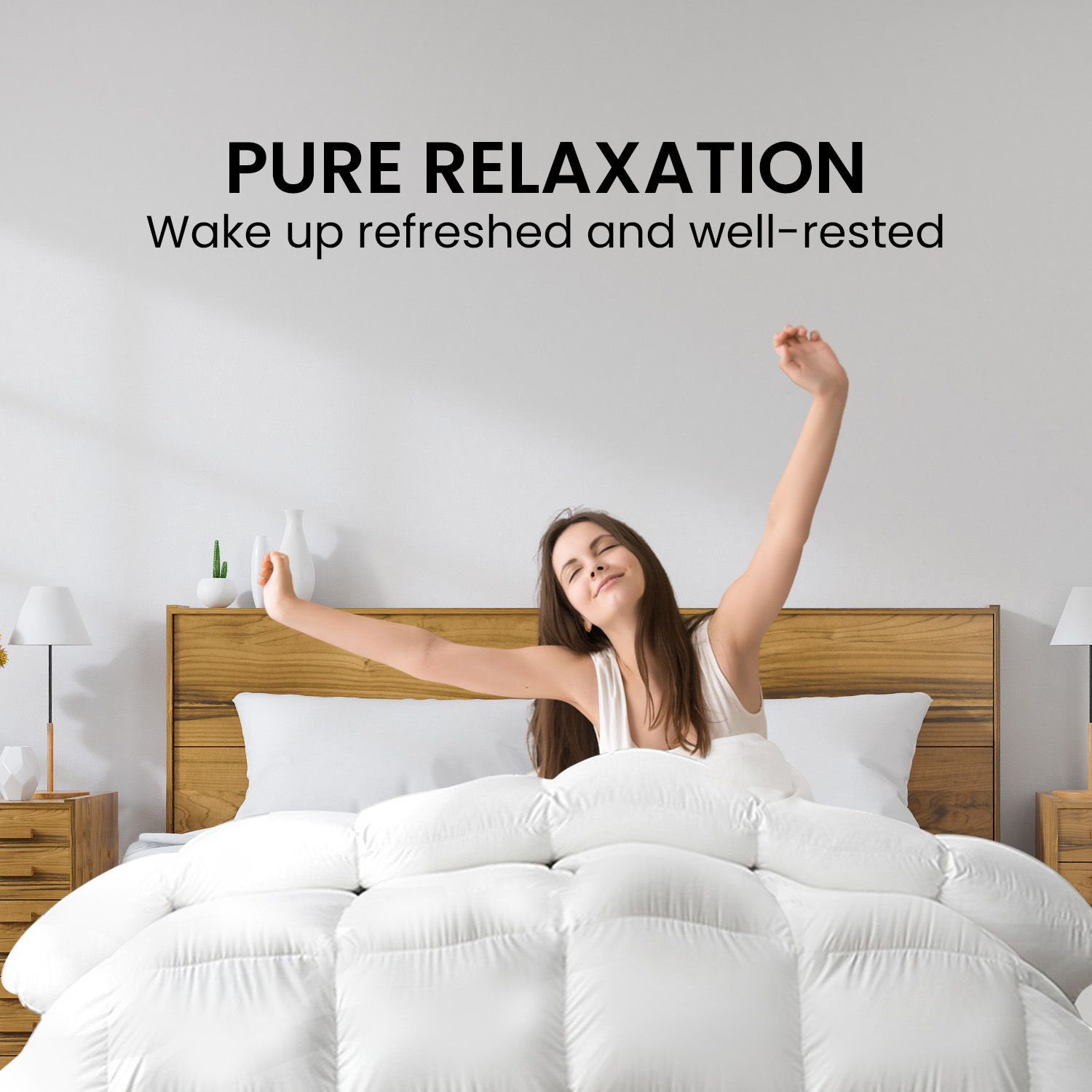 Made from all-natural duck down feathers and a pure cotton cover, its super soft and cosy feel will leave you fully relaxed. It’s also designed to have superior heat retention so you can sleep all warm and cosy all night long!