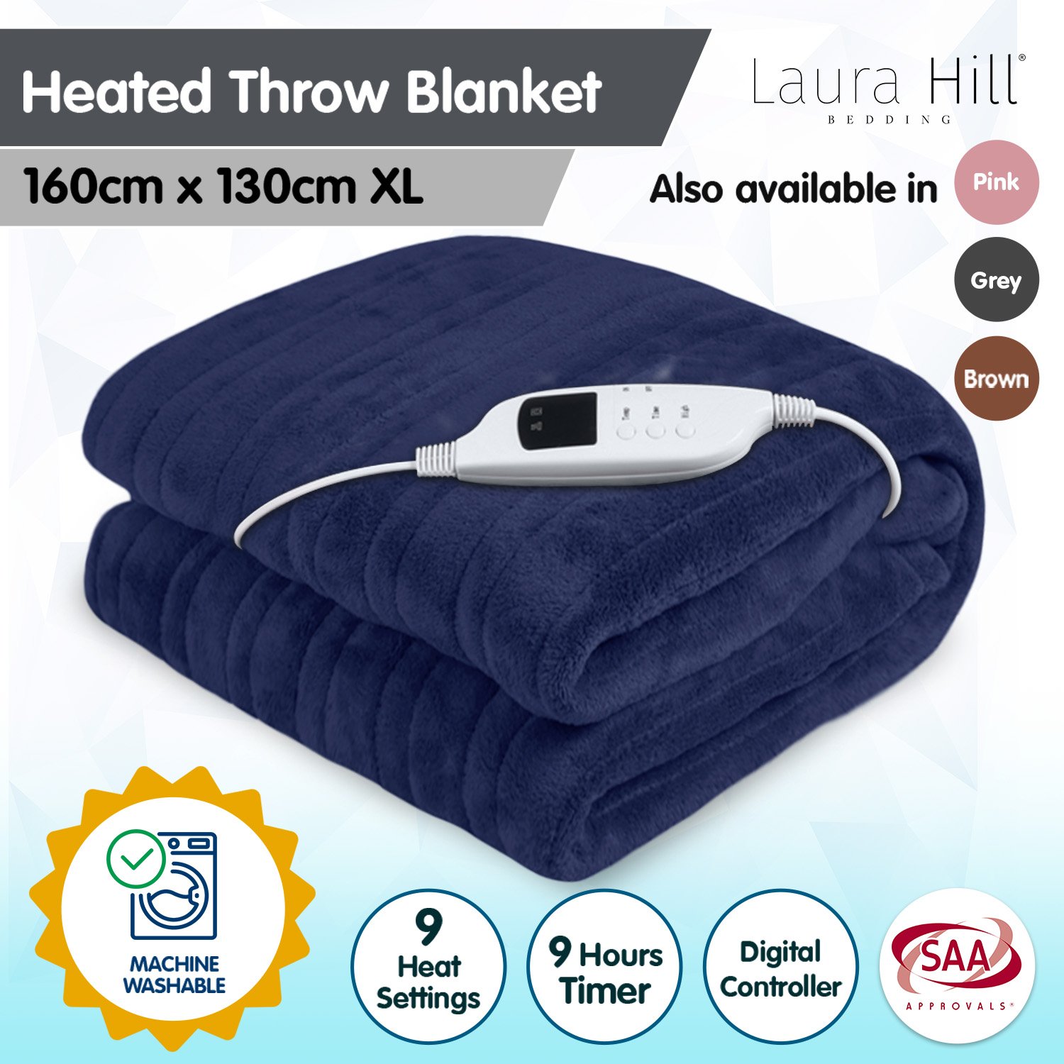 Laura Hill Heated Electric Blanket Coral Warm Fleece Winter Blue