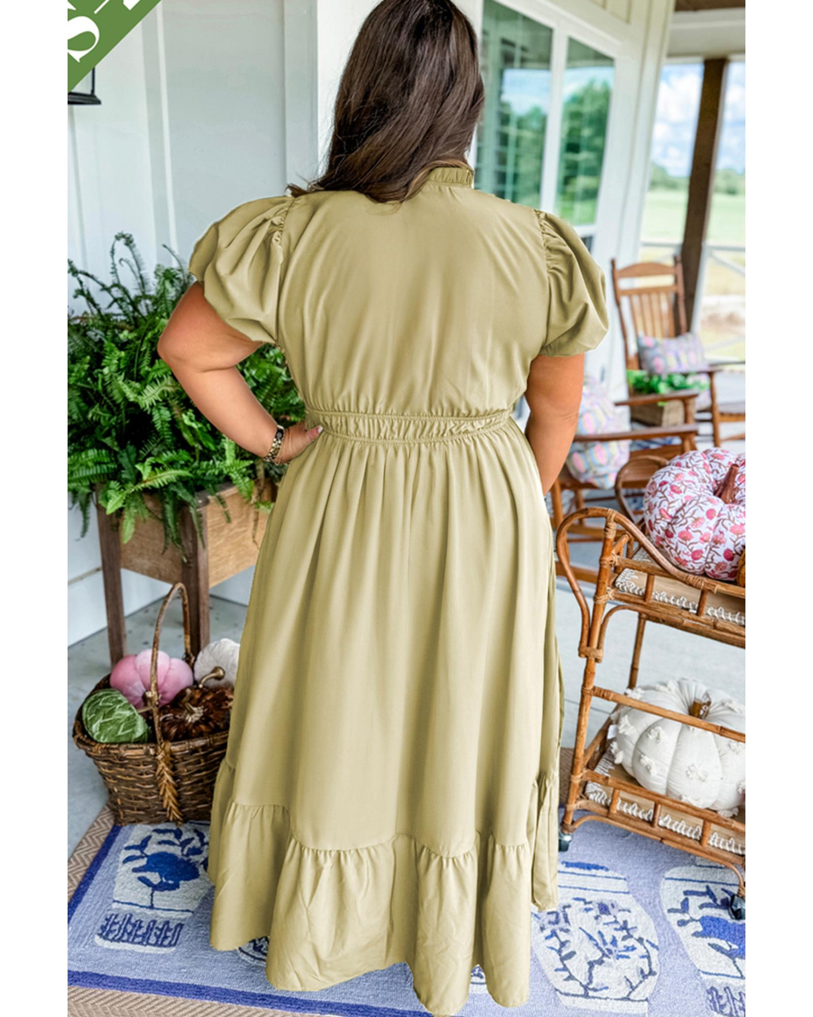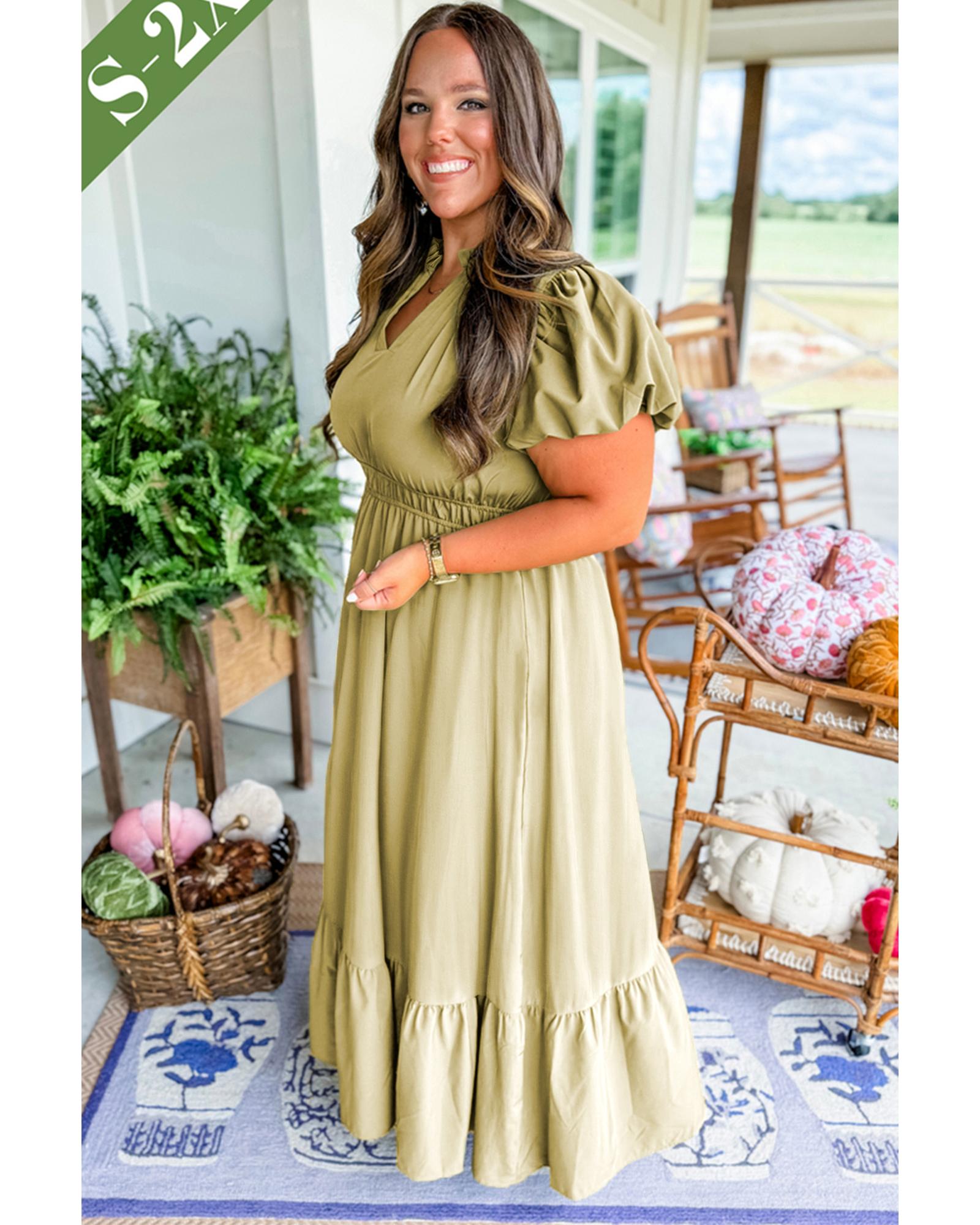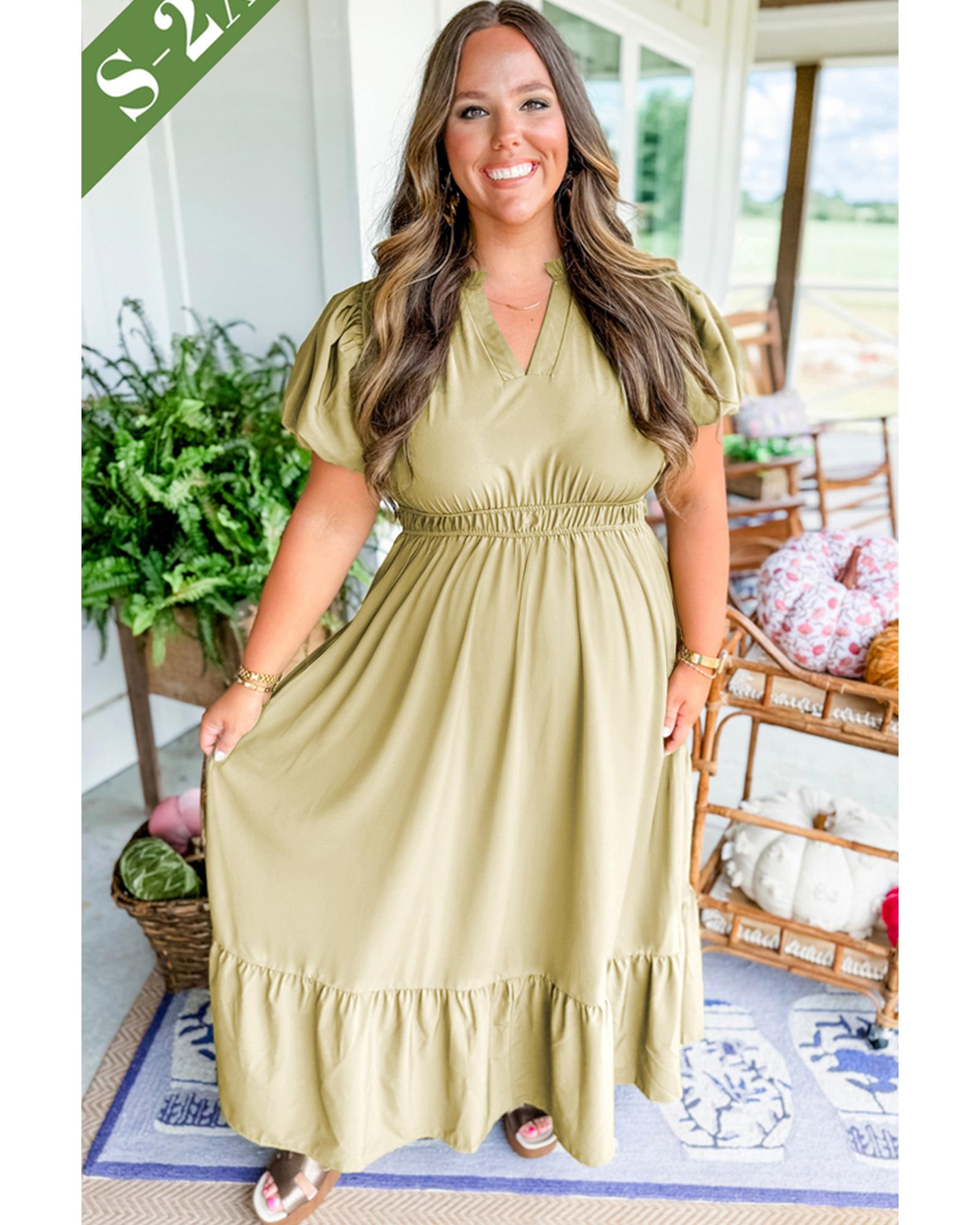 Laurel Green Notched V Neck Puff Sleeve Tiered Plus Size Maxi Dress – 1X