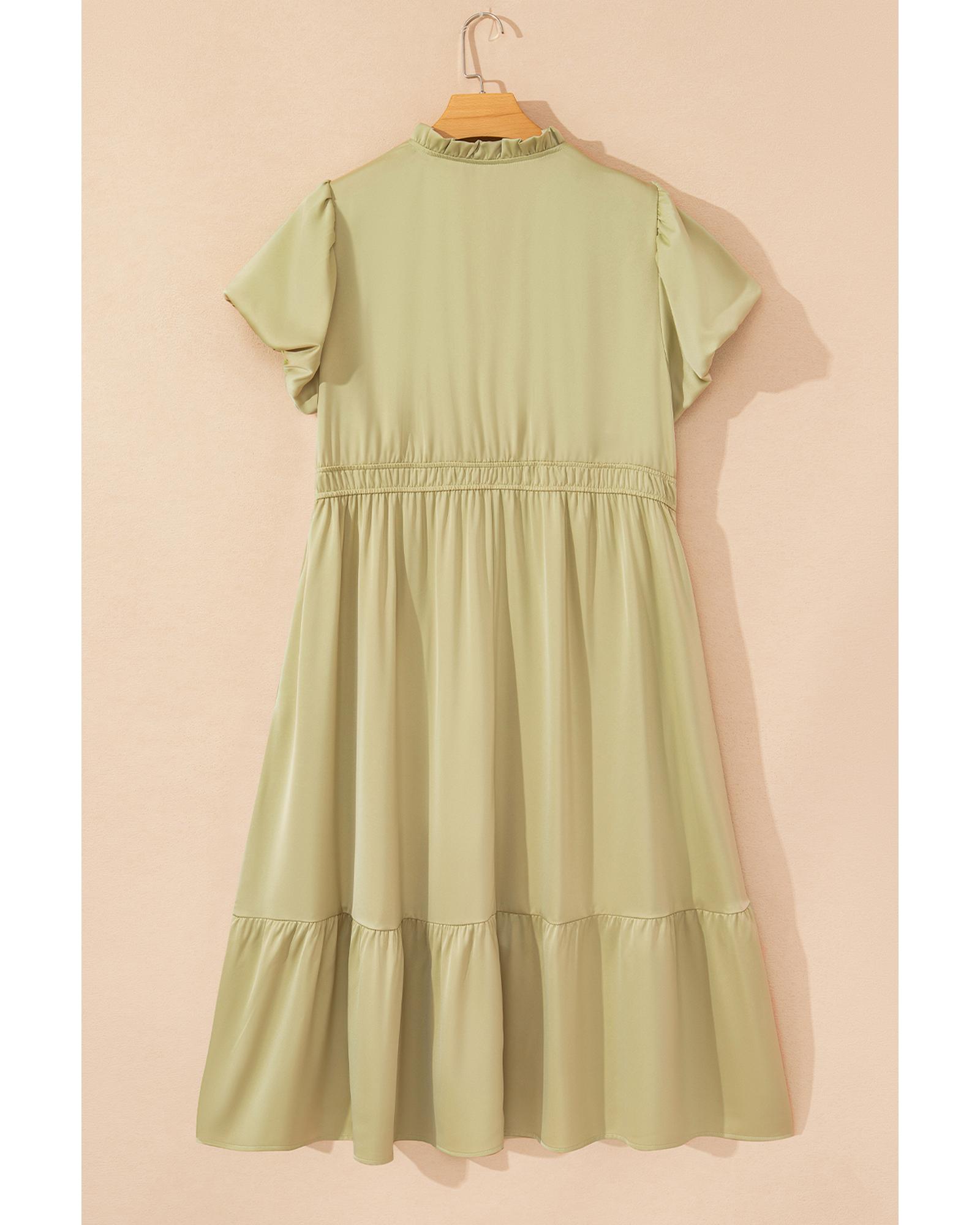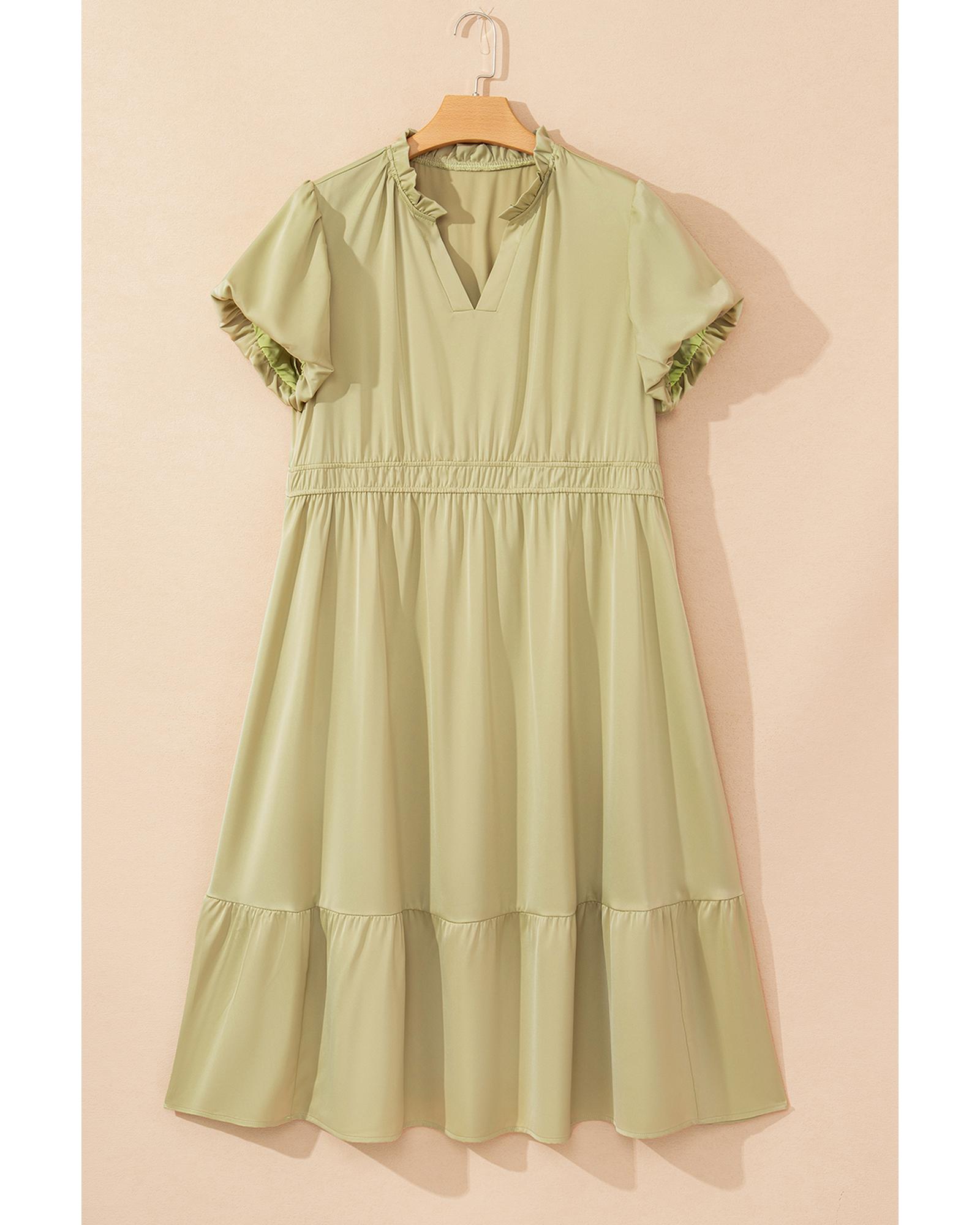 Laurel Green Notched V Neck Puff Sleeve Tiered Plus Size Maxi Dress – 3X