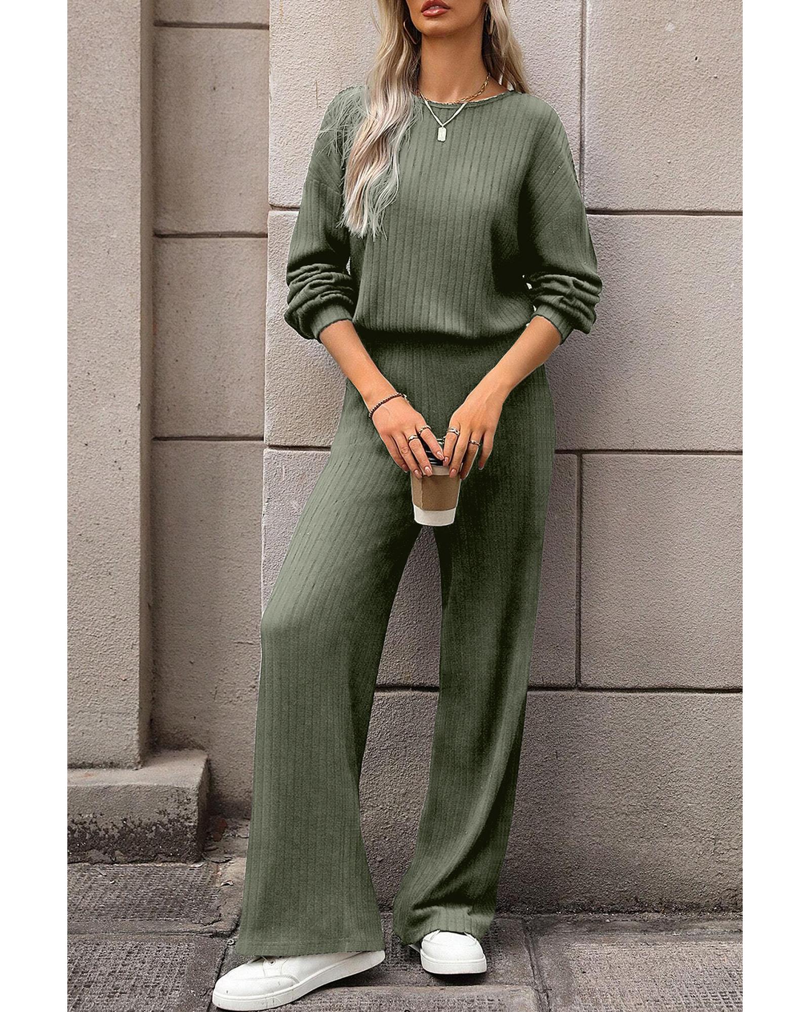 Laurel Green Solid Ribbed Knit Keyhole Back High Waist Jumpsuit – XL