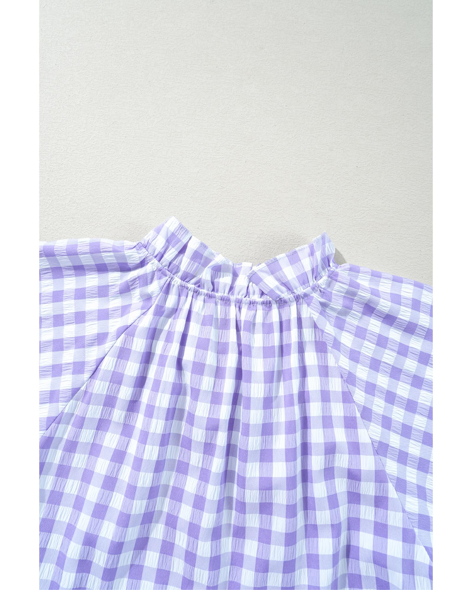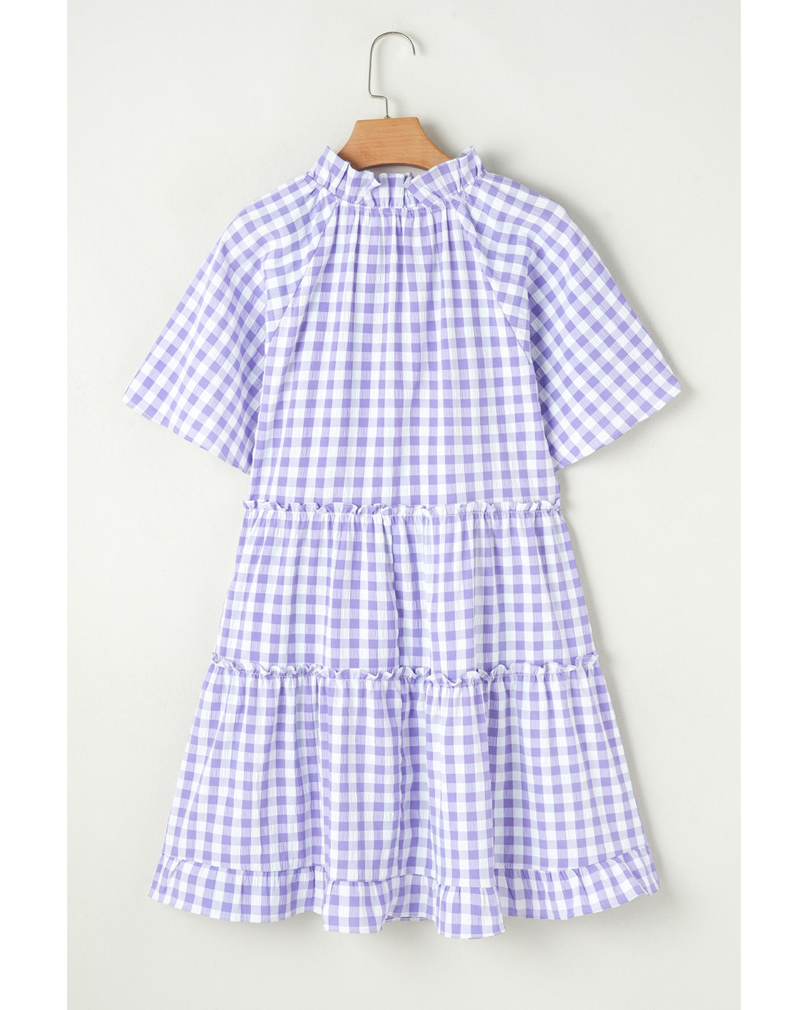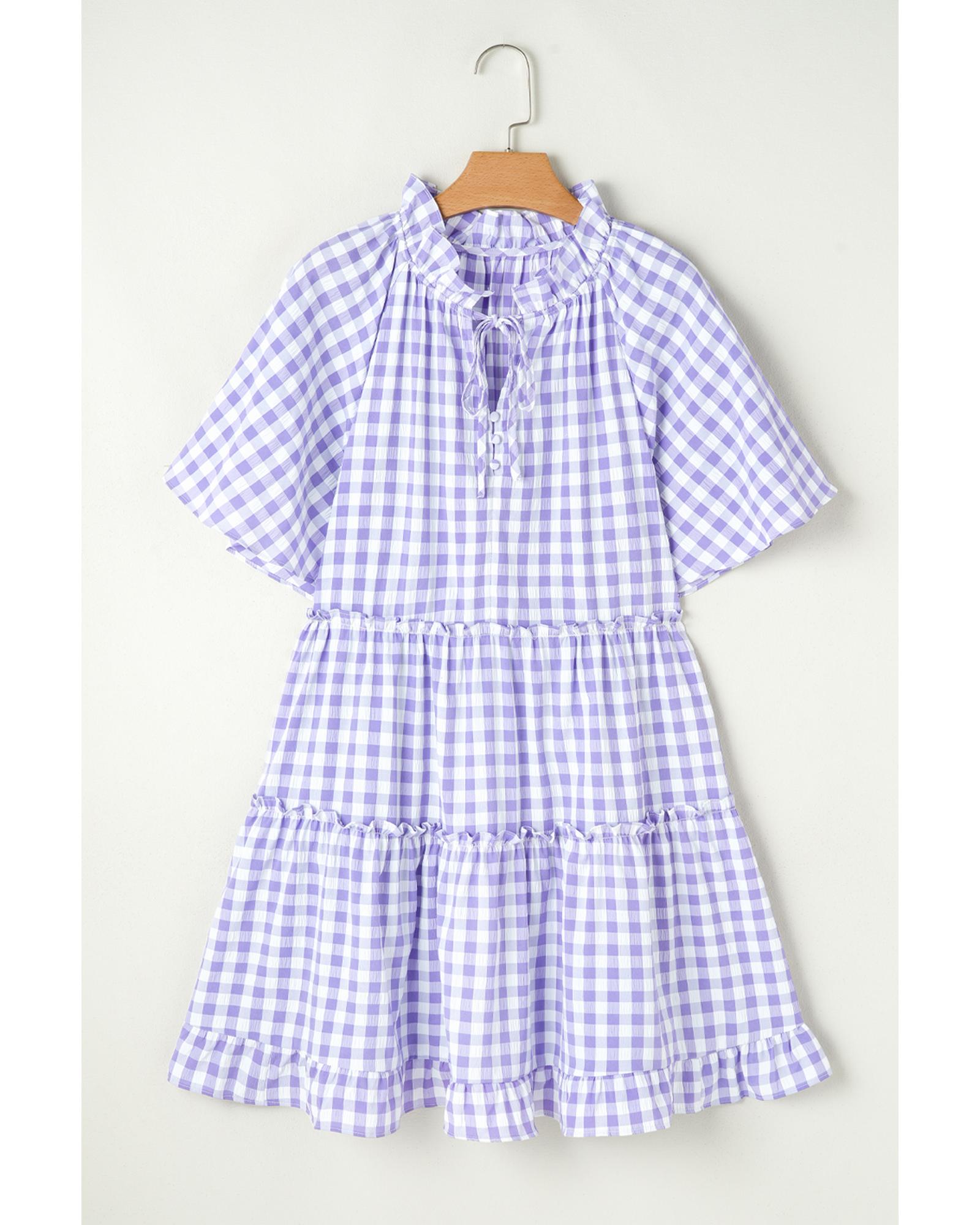 Lavendula Plaid Ruffle Wide Short Sleeve Babydoll Mini Dress – M