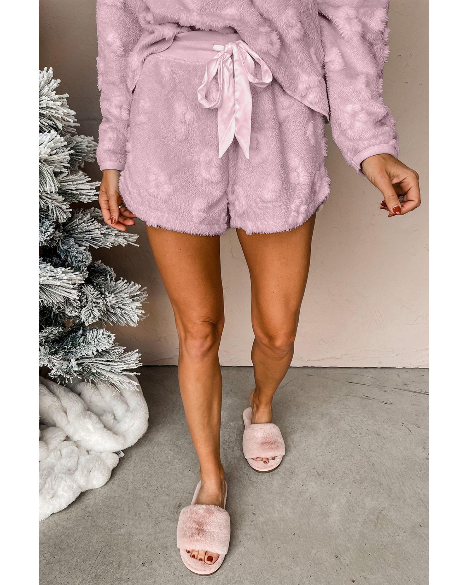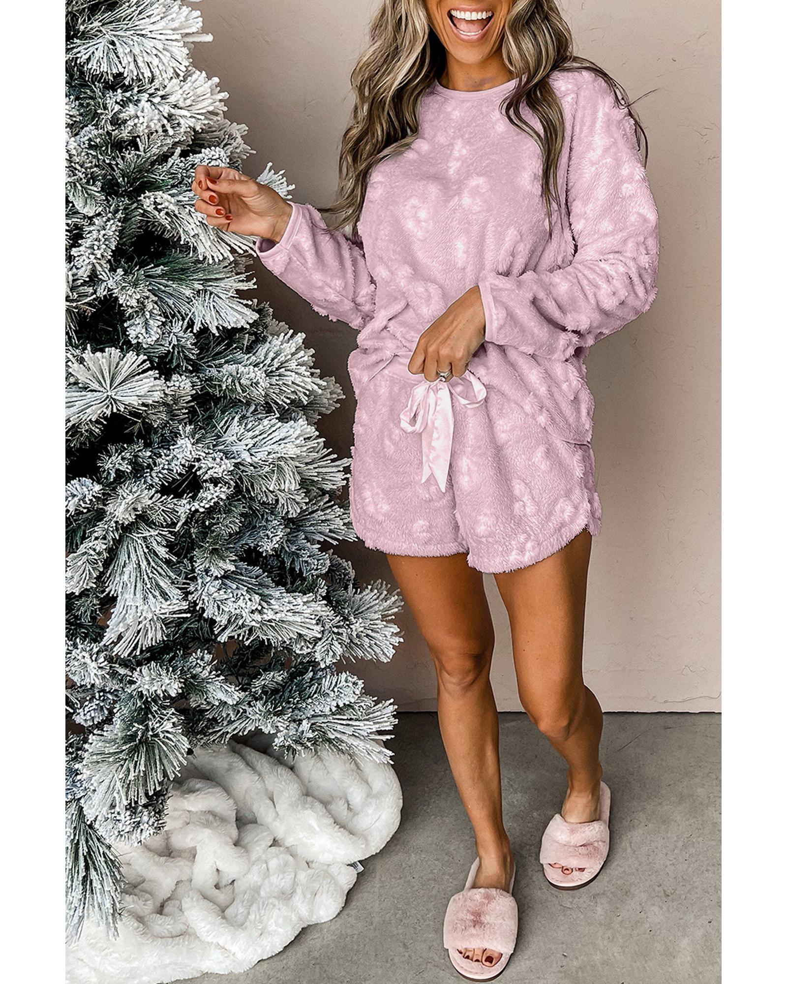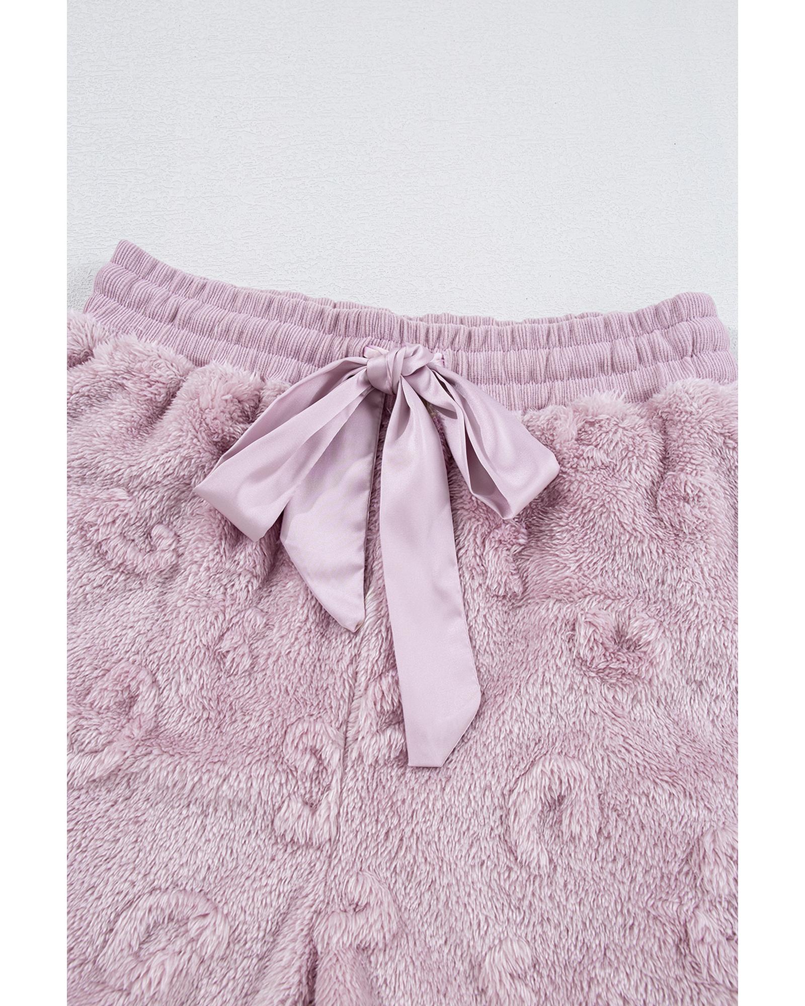 - Lavendula Textured Leopard Fleece Loose Two Piece Lounge Set