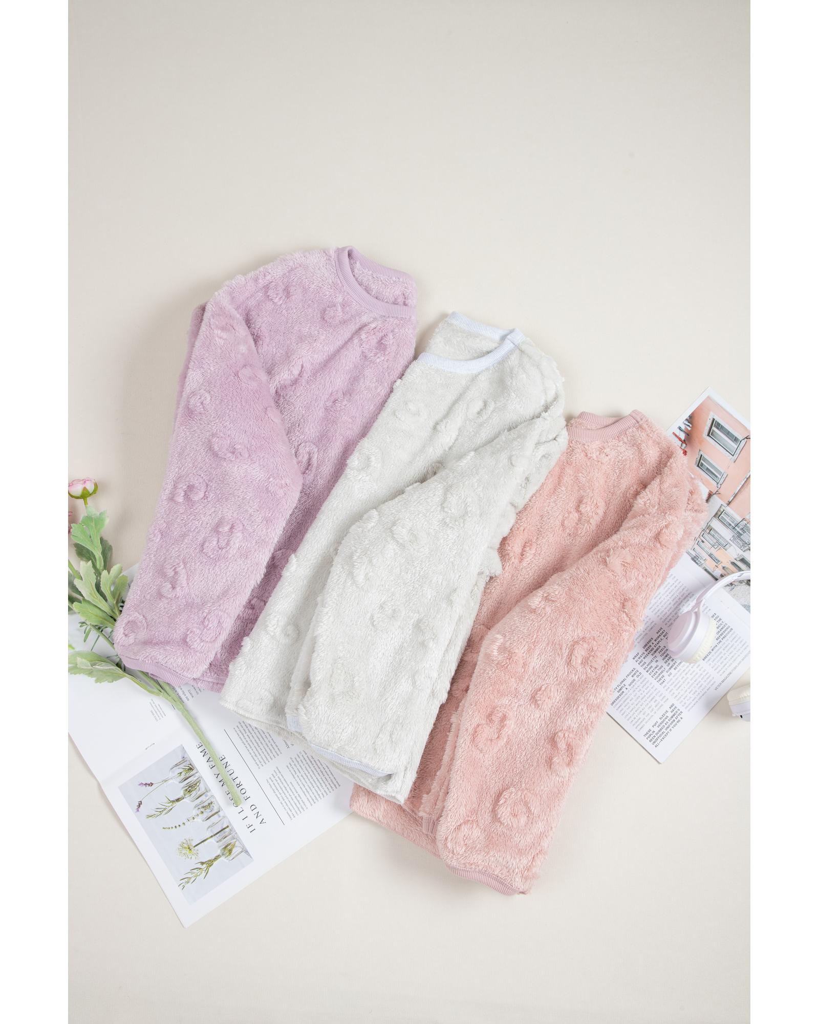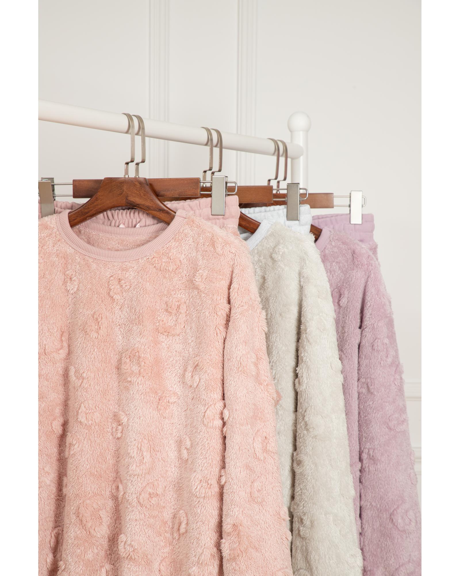 Lavendula Textured Leopard Fleece Loose Two Piece Lounge Set – XL